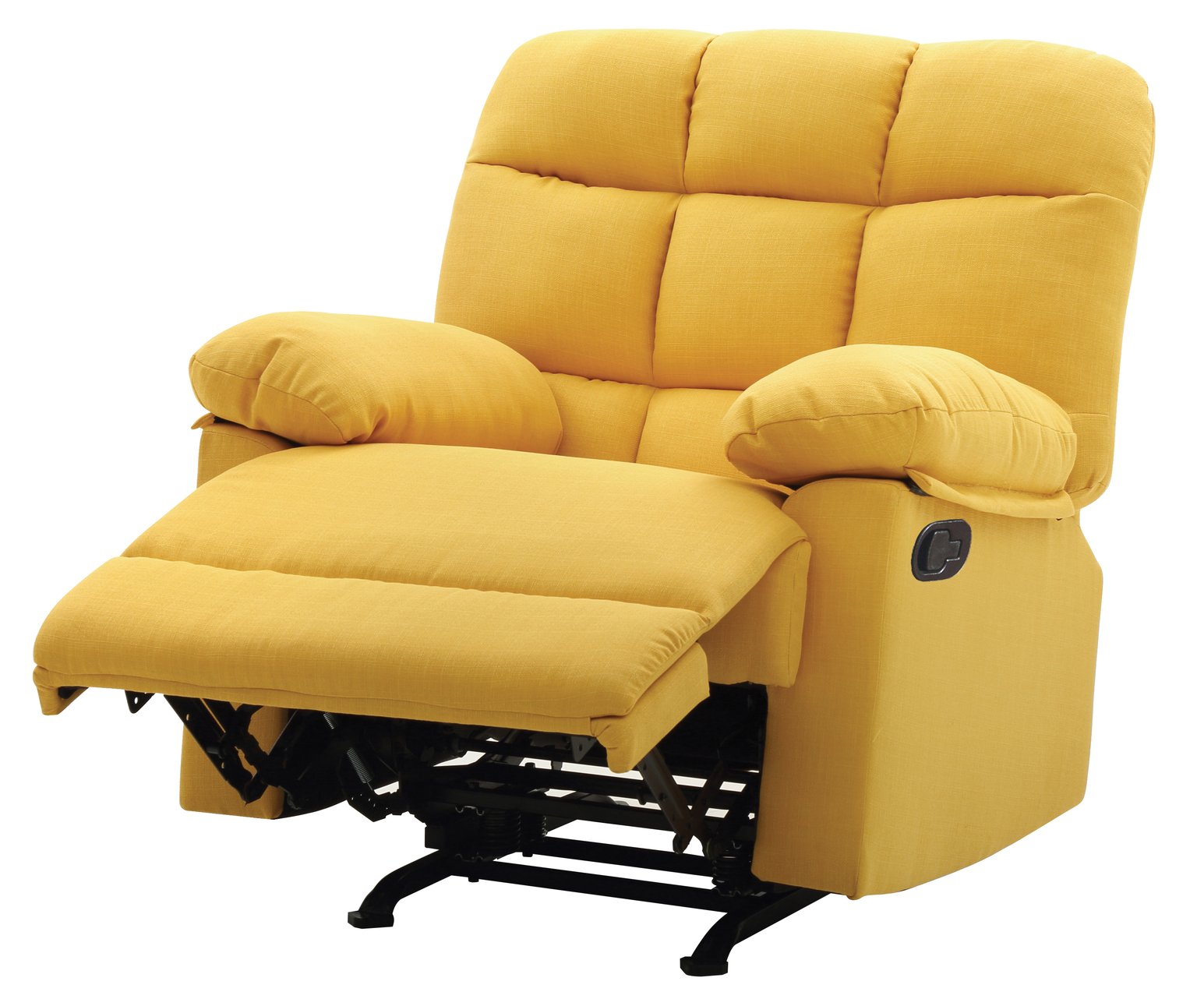 Bright, comfortable, and contemporary, this yellow padded arm recliner brings a cheerful focal point and relaxing seating to living rooms, reading nooks, or home offices. Upholstered in soft, durable fabric with generously padded arms and a smooth reclining mechanism, it combines modern style with everyday comfort for one-person use.