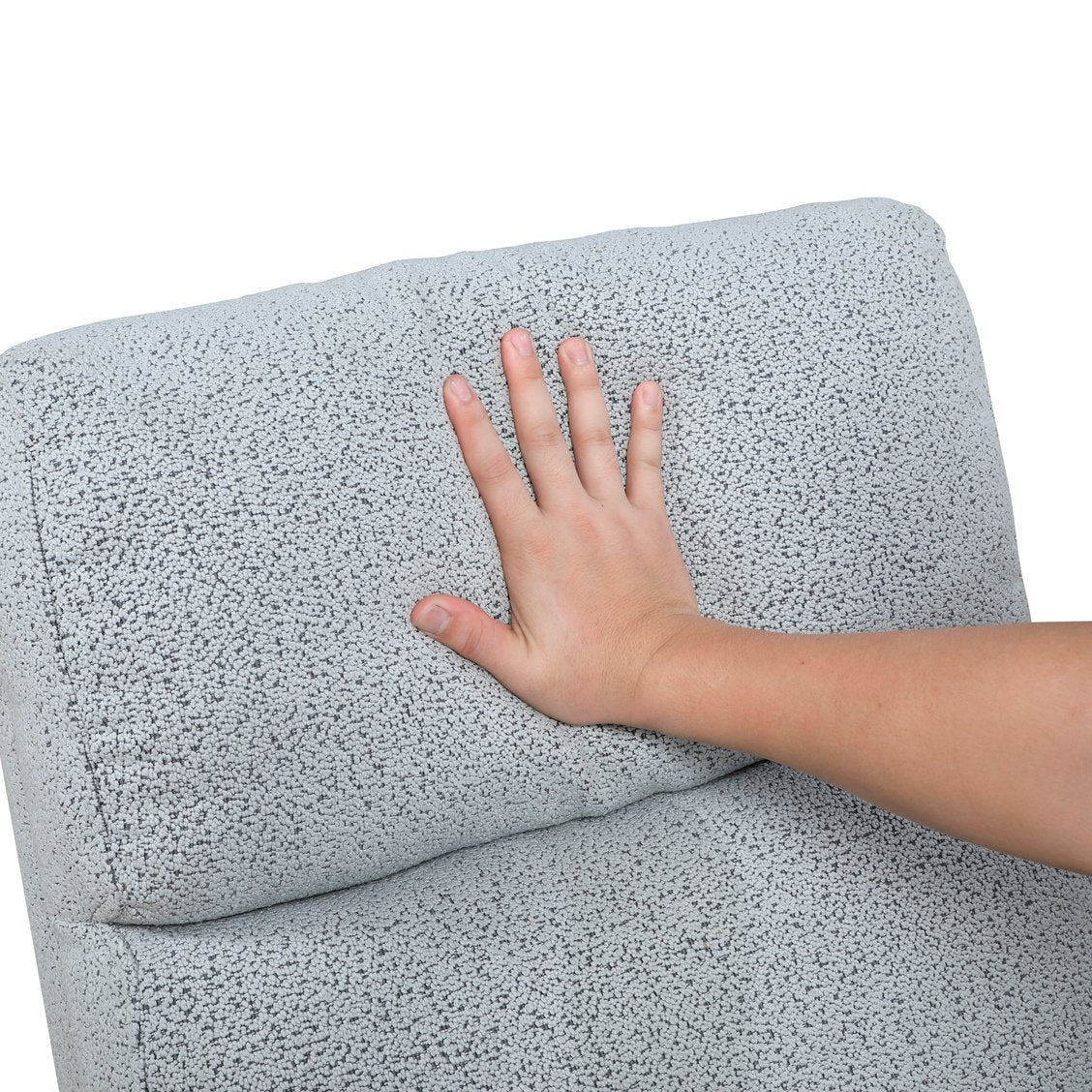 - Materials & Finish: Soft gray boucle fabric upholstery with brown-finish wooden arms for a modern yet warm aesthetic.