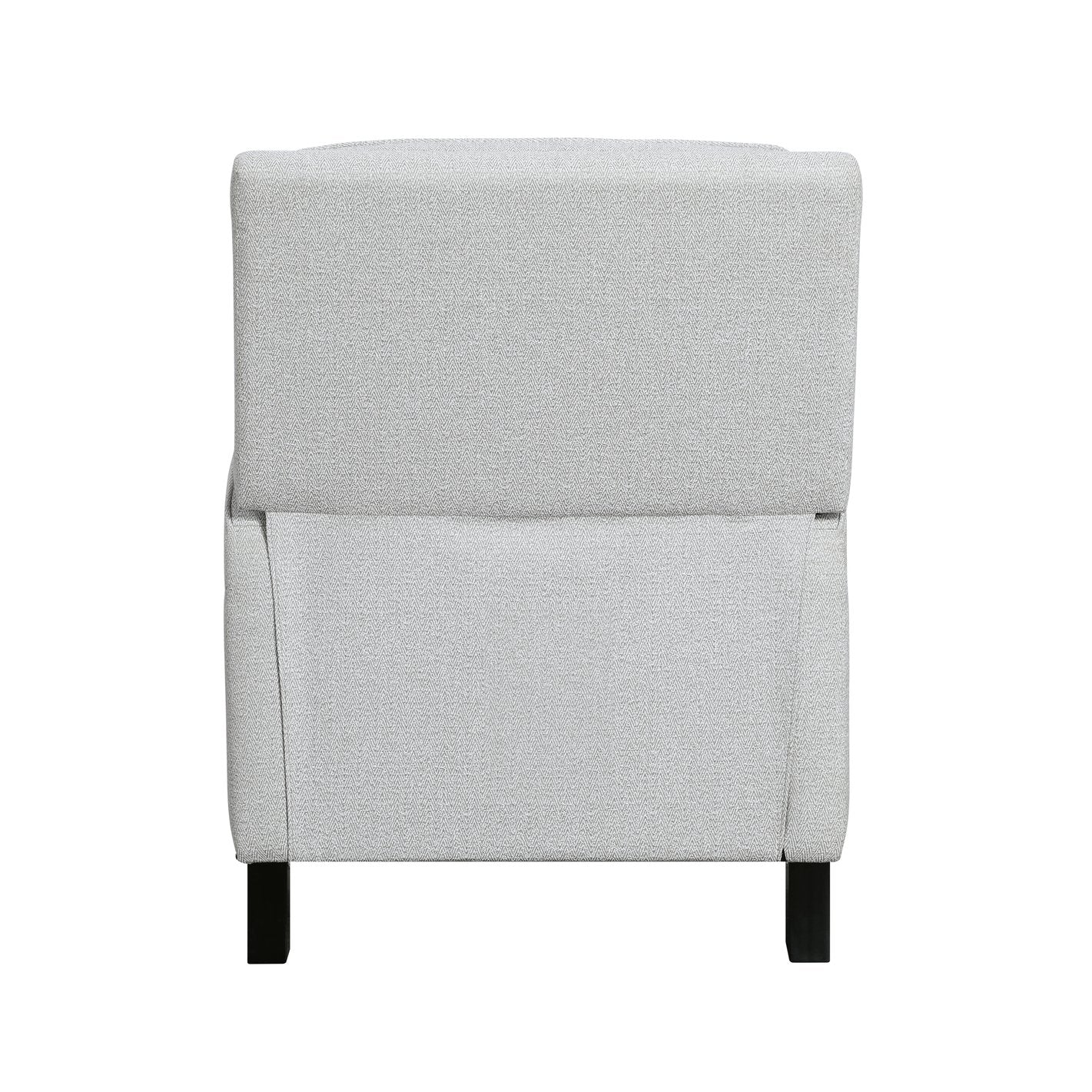 Sink into comfort with the Berenson push-back reclining chair — a transitional piece that pairs modern lines with classic details. Upholstered in soft gray chenille, it features a tailored silhouette and nailhead trim for a refined look, while the effortless push-back mechanism and cushioned seat deliver relaxing support for your living room, den, or reading nook.