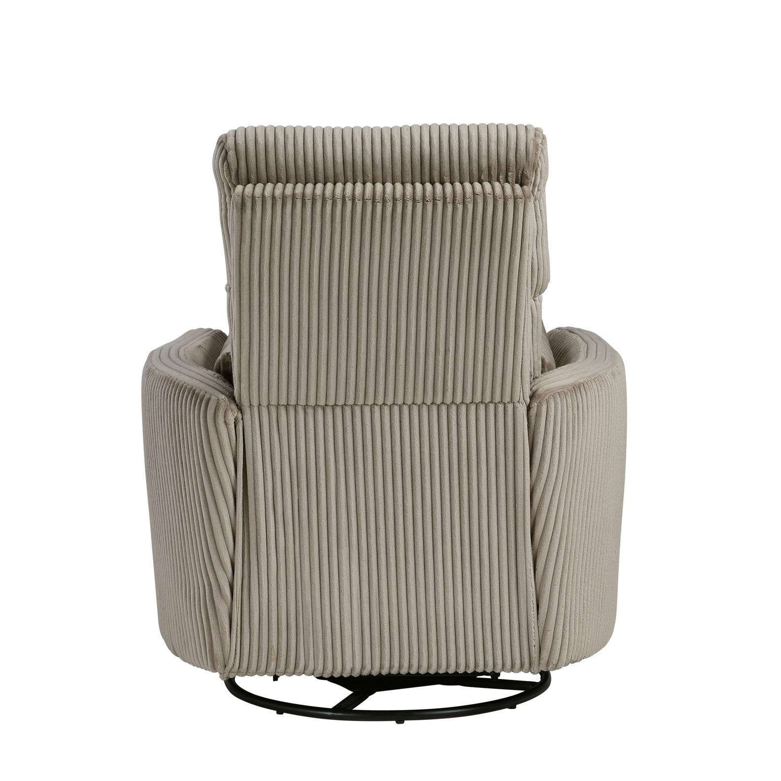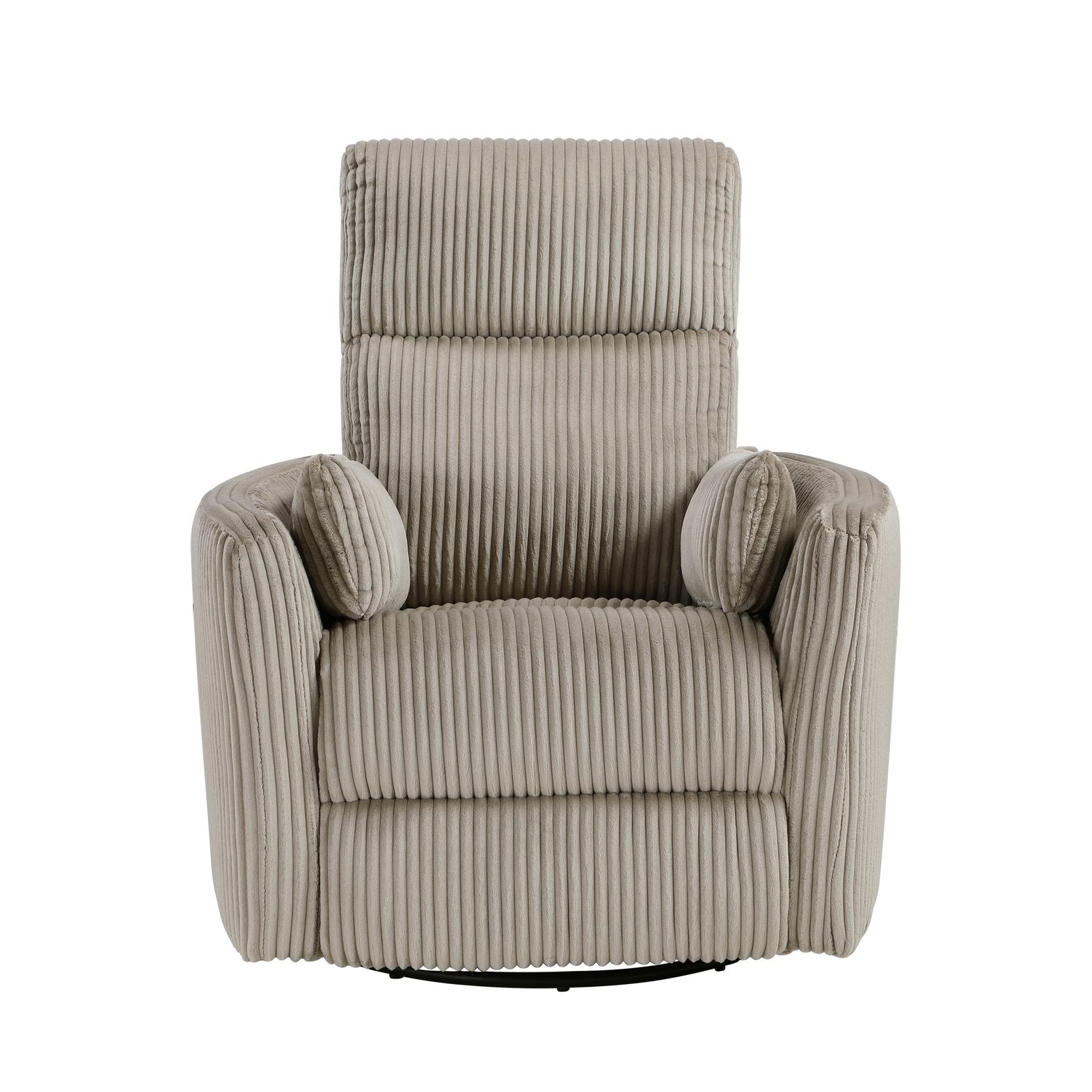 Sink into everyday luxury with this taupe corduroy swivel glider recliner — a smart, comfortable addition to living rooms, bedrooms, or nurseries. Combining a soft textured upholstery with smooth reclining and 360° swivel-glide motion, the chair is built for relaxing, reading, or watching TV while maintaining a modern, versatile look that complements a range of decor styles.