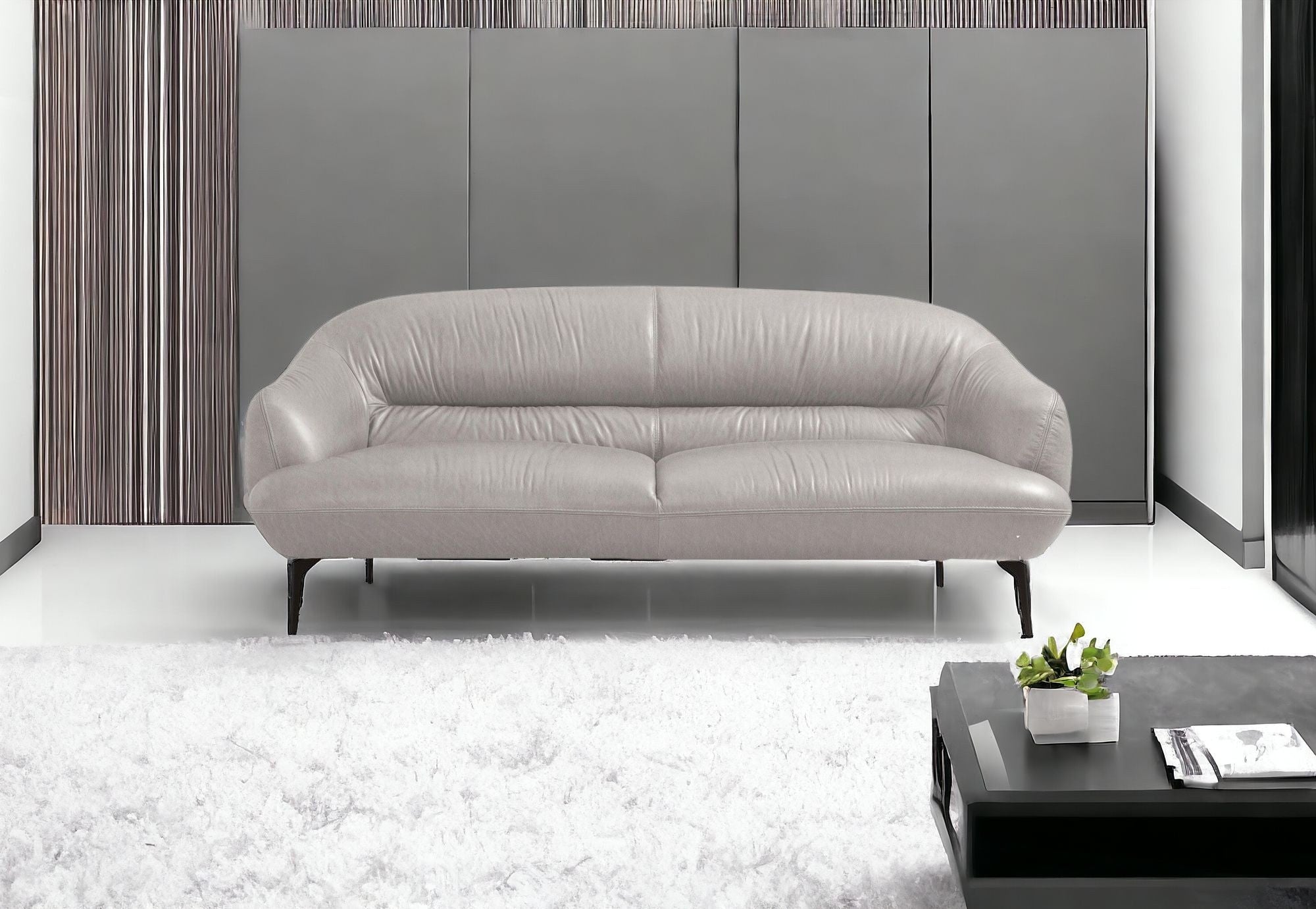 - Gray solid color upholstery.