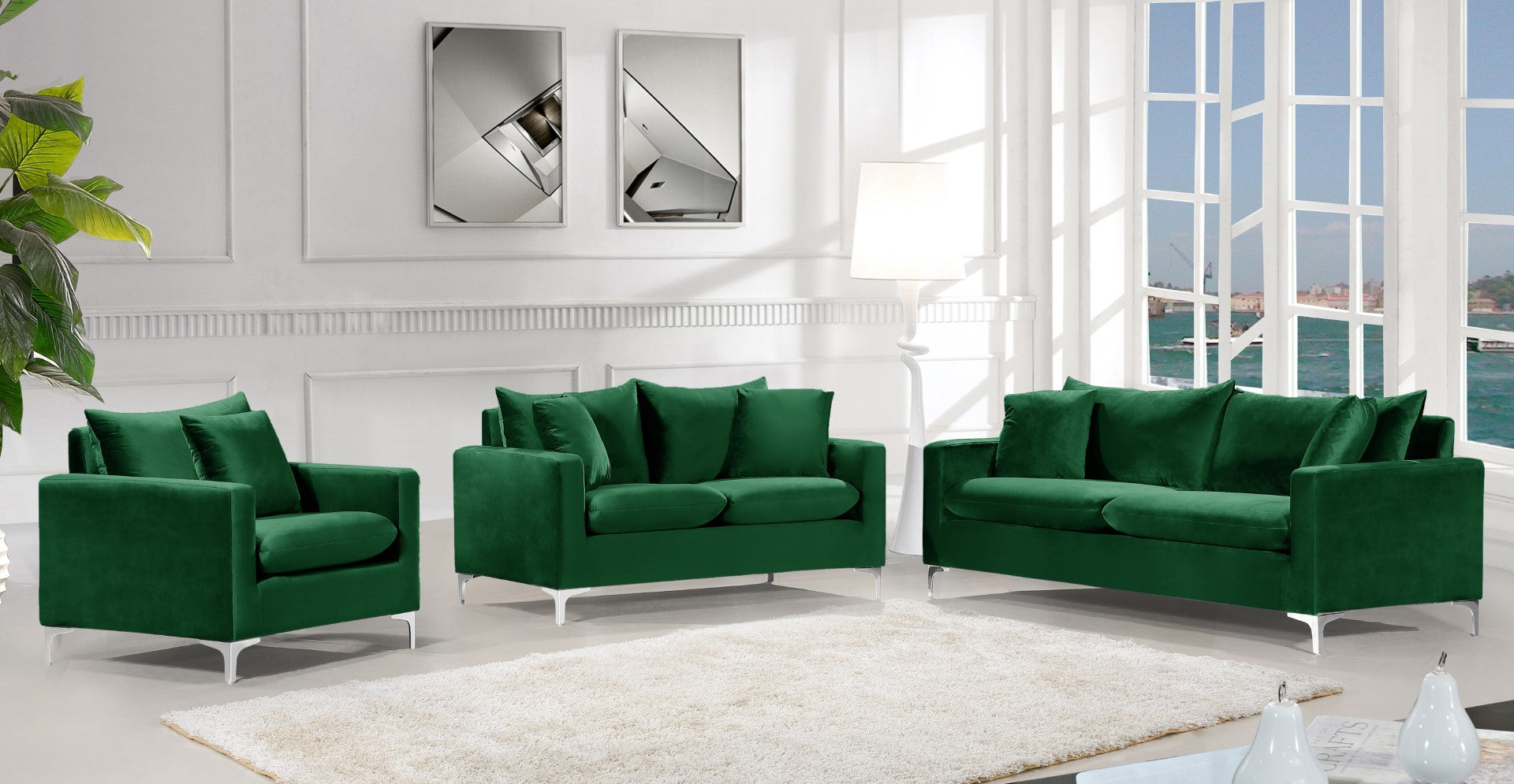 - Material: Velvet / Engineered Wood / Metal / Foam