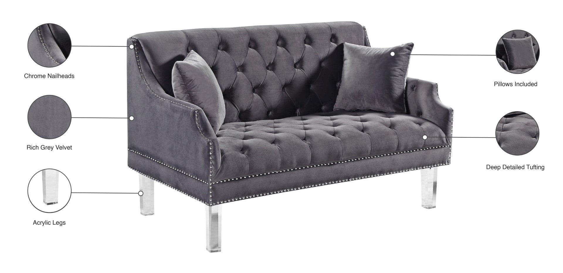 - Material: Acrylic / Velvet / Engineered Wood / Metal / Foam