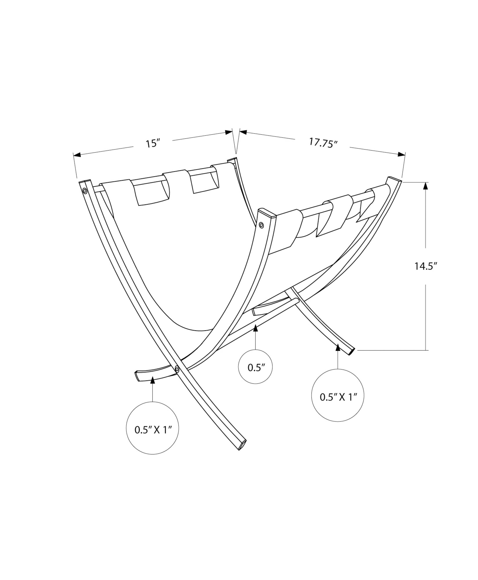 Keep your living spaces tidy with this contemporary freestanding magazine rack that combines modern chrome metal framing with a sleek black leather-look sling. Designed for versatile use in the living room, office, bedroom, or bathroom, it neatly organizes magazines, newspapers, books, and even tablets or small laptops while protecting floors from scuffs.