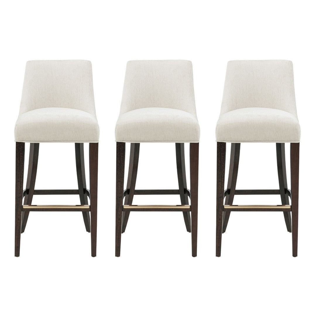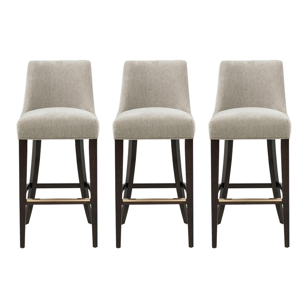 - ? Modern Barstool with Backrest Perfect for Bar and Kitchen Use. Set of 3. ? Upon assembly, Barstool Dimensions Measure: 18.9 in. Length, 43.7 in. Height, 21.9 in. Depth. ? Upholstered in Luxurious Chenille with Foam Padding. ? Classic Upholstered Seat Design with Maximum Comfort and Functionality. ? Rubberwood Frame with Dark Walnut Finish. ? Includes Footrest with Gold Metal Plate for a Touch of Elegance with Comfort. ? Seat Height: 32.5 in. ? Minimal Assembly Required. Hardware Included