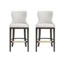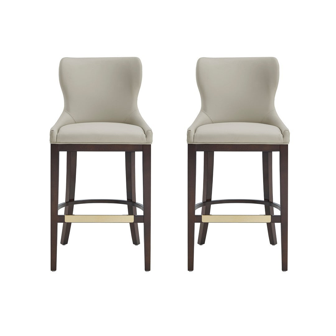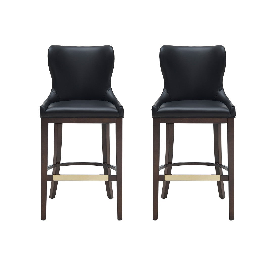 - ? Modern Barstool with Backrest Perfect for Bar and Kitchen Use. Set of 2. ? Barstool Dimensions Measure: 21.7 in. Length, 43.9 in. Height, 24 in. Depth. ? Solid Beech Wood Frame with Dark Walnut Finish. ? Subtle Wingback Design for Added Support and Elegance. Armless Design Allows for a Seamless Fit Under Bars or Counters. ? Includes Footrest with Gold Metal Plate for a Touch of Elegance with Comfort. ? Seam Detailing and Topstitching for an Elevated and Sophisticated Look. ? Made to Last. Commercial Grade Product. ? Delivered to you Fully Assembled! No Assembly Required!