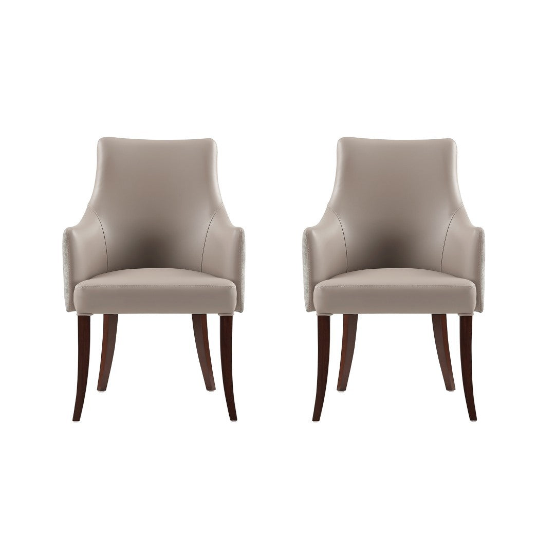 - ? Modern Dining Chair for Dining Room and Task Use. Set of 2. ? Armchair Dimensions Measure: 25.2 in. Length, 39 in. Height, 25.6 in. Depth. ? Solid Beech Wood Frame Stained in Dark Walnut. ? Upholstered in 2 Textured Luxurious Leatherette Front and Velvet Back with Foam Padding. ? Weight Capacity: 300 Lbs. Each. ? Seat Height: 19.5 in. ? Made to Last. Commercial Grade Product. ? Delivered to you Fully Assembled! No Assembly Required!