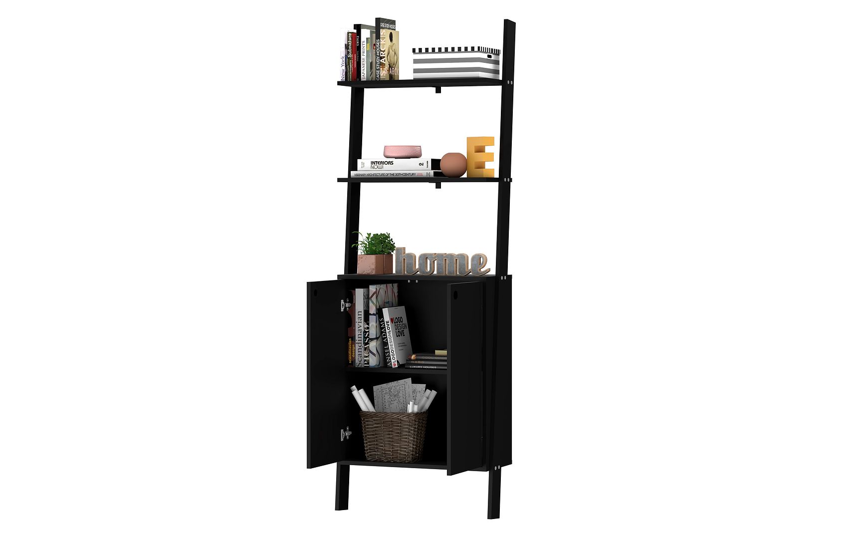 - Mid-Century Modern Ladder Bookcase and Cabinet for Living Room and Office Use.