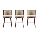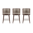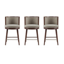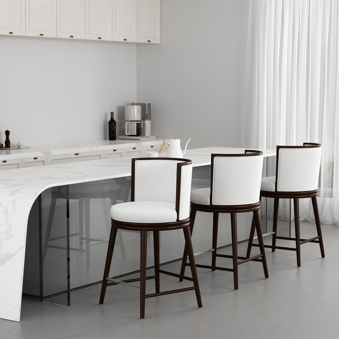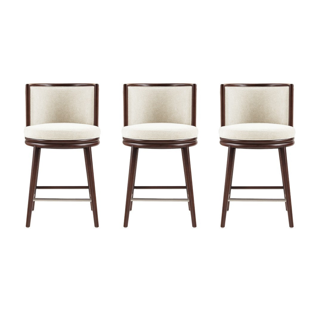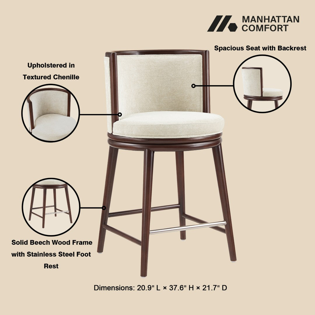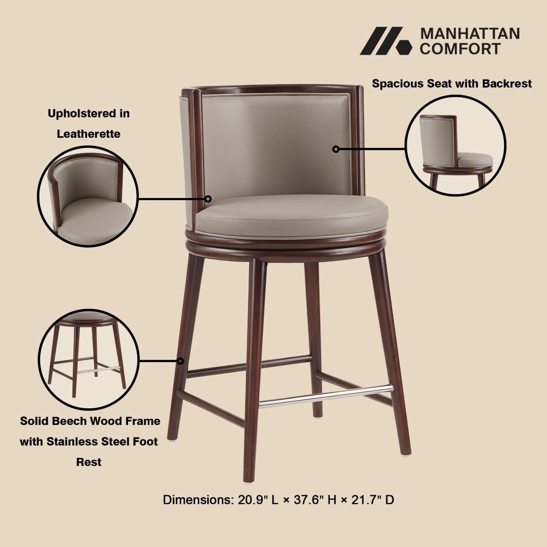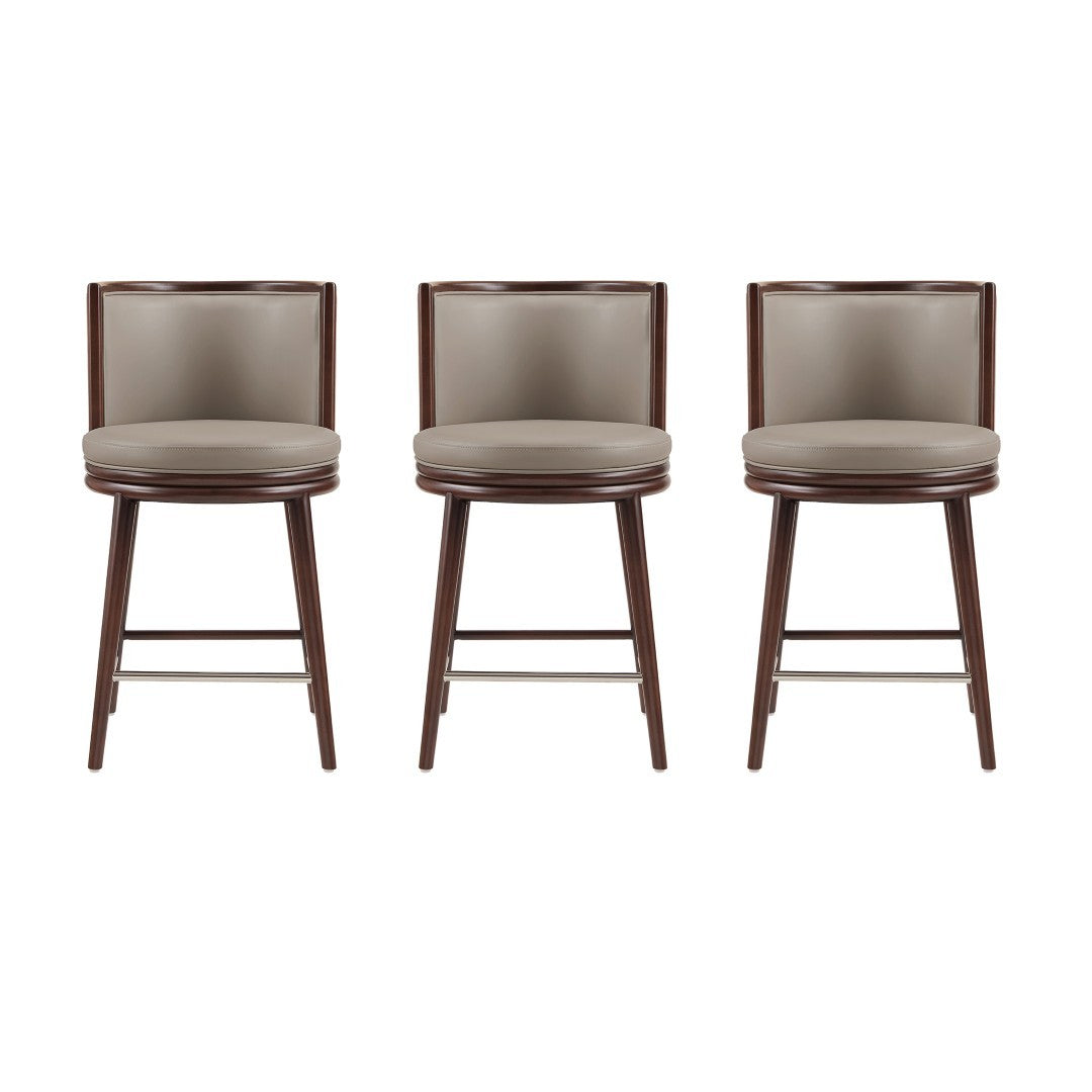 - ? Modern Counter Stool with Backrest Perfect for Counter and Kitchen Use. Set of 3. ? Counter Stool Dimensions Measure: 20.9 in. Length, 37.6 in. Height, 21.7 in. Depth. ? Upholstered in Luxurious Leatherette or Textured Chenille with Foam Padding. ? Round Upholstered Seat for Maximum Versatility and Functionality. ? Solid Beech Wood Frame with Dark Walnut Finish. ? Frame Includes a Stainless Steel Foot Rest Touch of Sleek Elegance with Comfort. ? Made to Last. Commercial Grade Product. ? Delivered to you Fully Assembled! No Assembly Required!