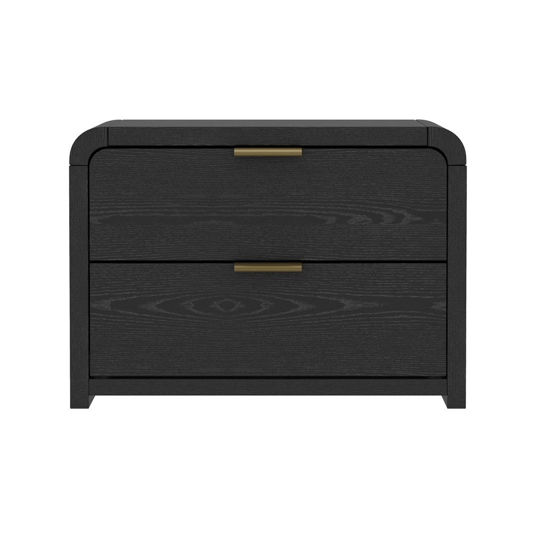 - ? Modern Nightstand for Bedroom and Living Room Use. ? Upon assembly, Nightstand Dimensions Measure: 28 in. Length, 20 in. Height, 17 in. Depth. ? Includes 2 Drawers with .75 Extension. ? Horizontal Glam Drawer Handles Made of Metal with a Choice of Black or Gold Finish. ? Crafted with smooth solid wood rounded corners and a minimalist silhouette for a modern yet classic appeal. ? Made of High Quality MDF with Mix of Solid Wood. ? Perfect for Bedside Storage, Lamps or Display Items. ? Home Assembly Required. All Hardware Included