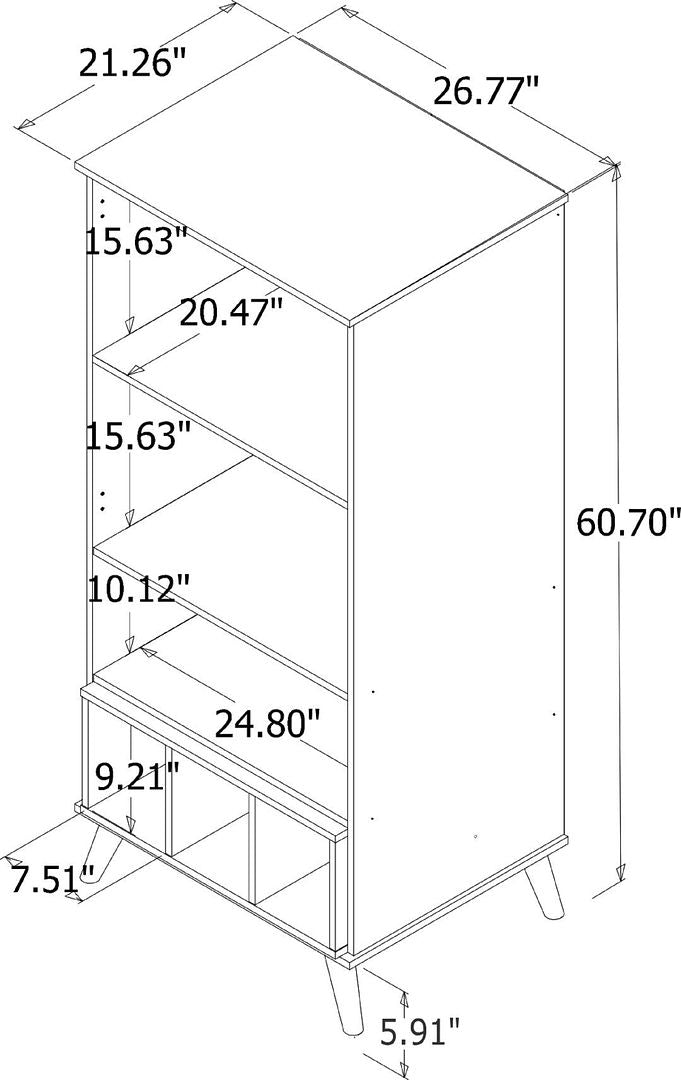 - Upon Assembly, Measures: 26.77 in. Length, 60.7 in. Height, 21.26 in. Depth.