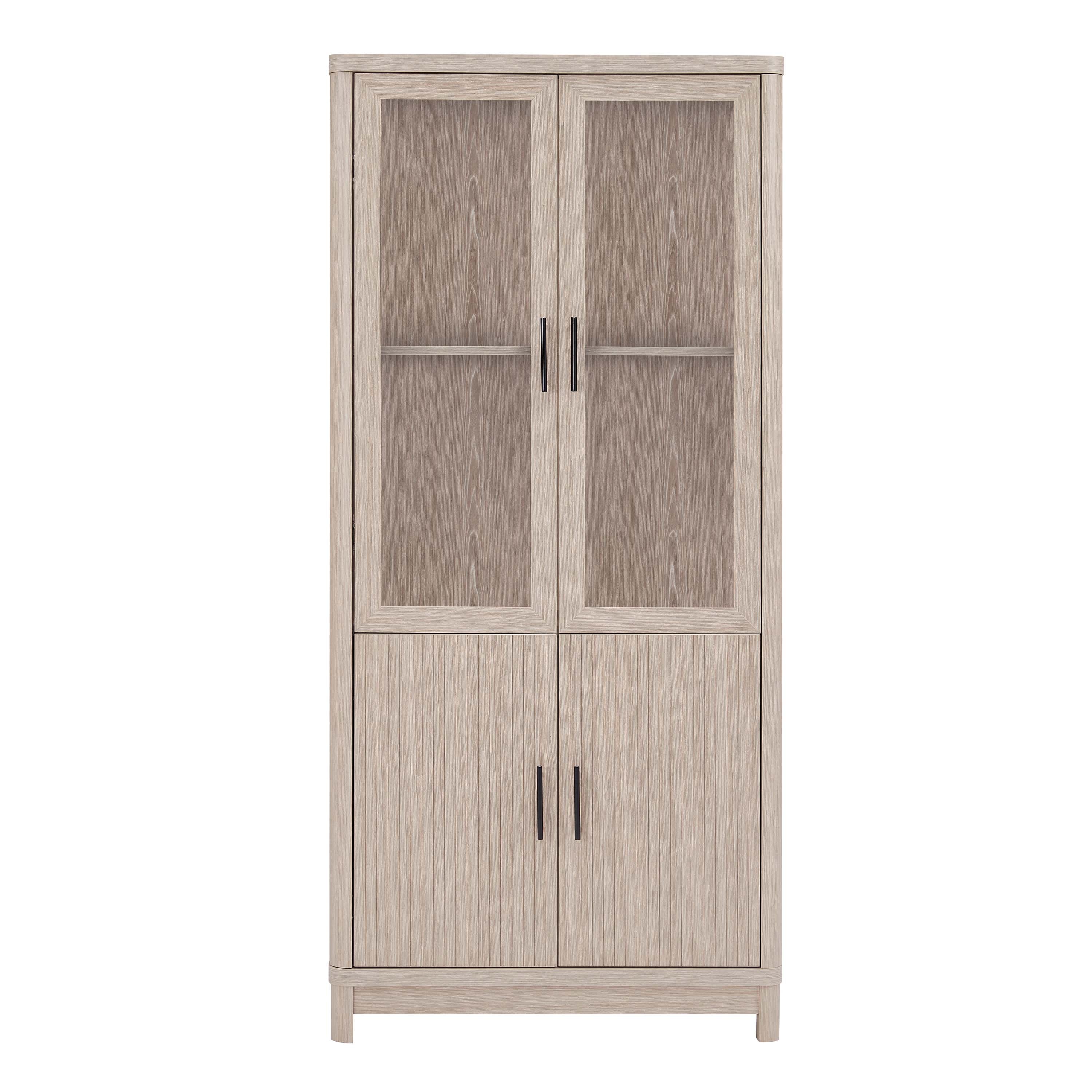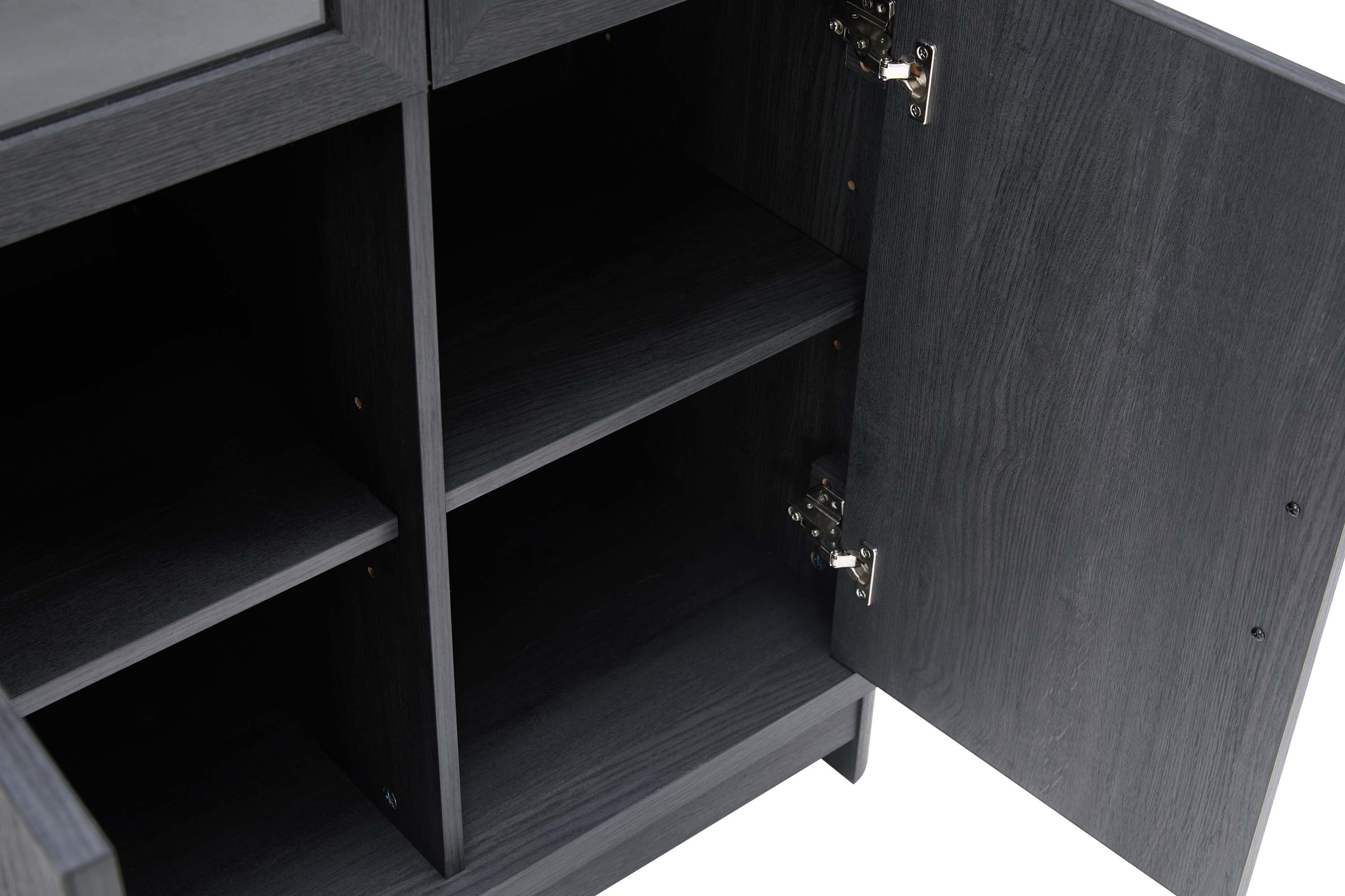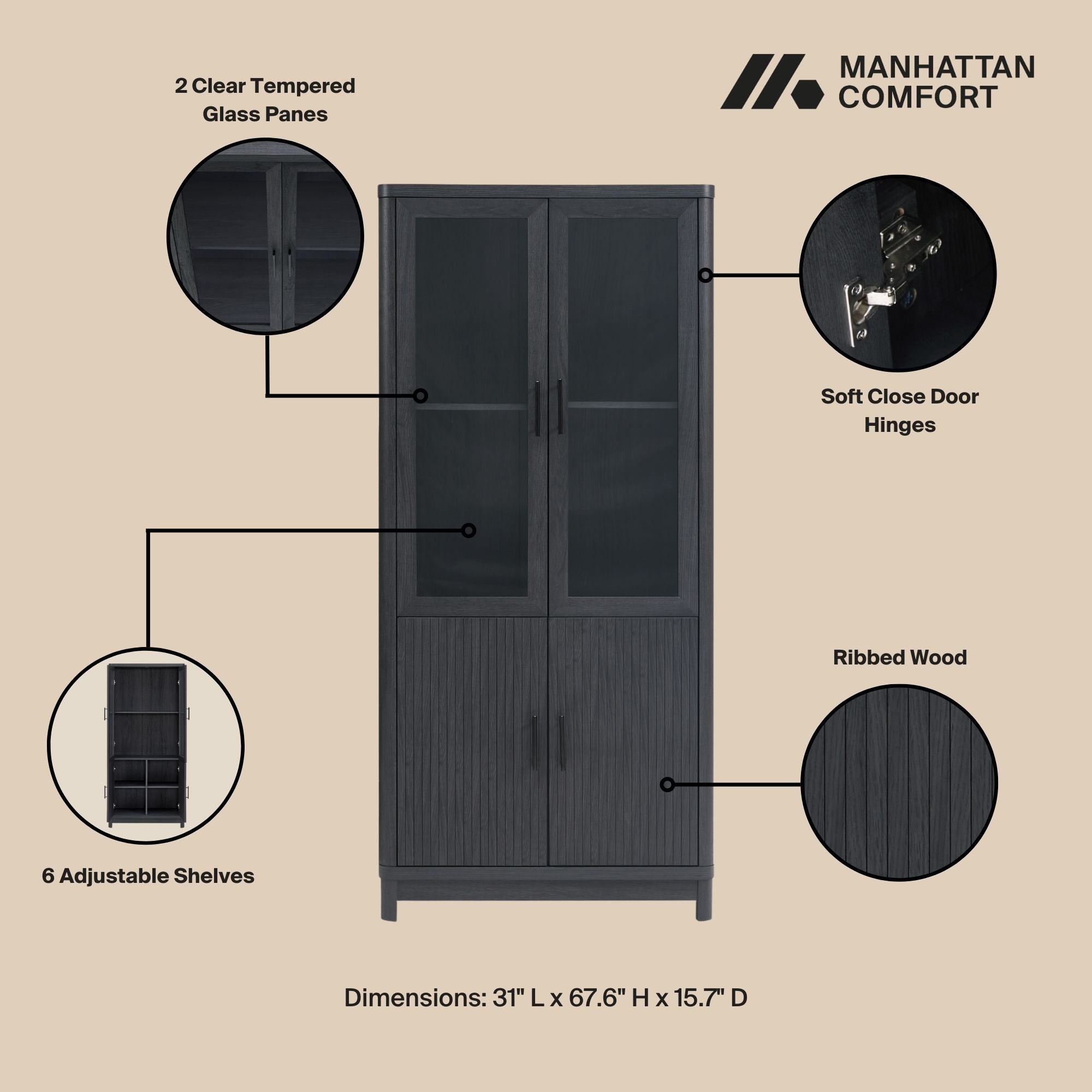 - 2 Soft Close Tempered Glass Panel Display on Top and 2 Ribbed Manufactured Wood Soft Close on Bottom.
