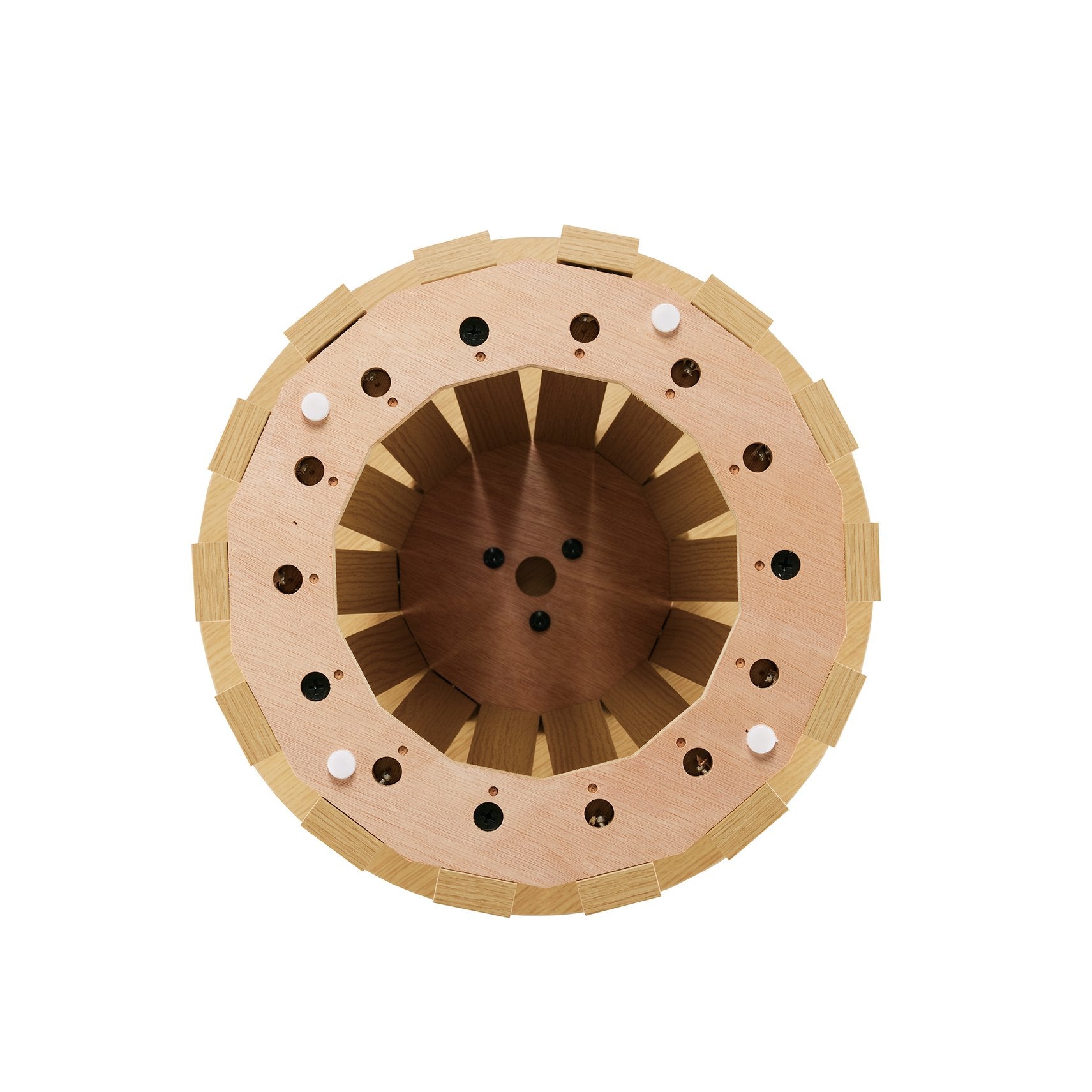 - Unique Slatted Conical Base Offers Stability with Modern Flare.