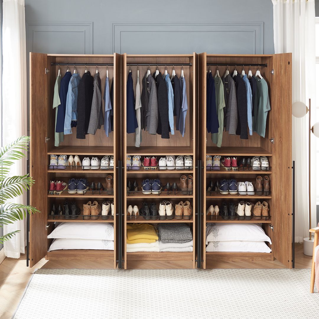 - Each Closet Includes a Sturdy Metal Clothes Rail, 3 Adjustable Shoe Storage , and a Large Storage Space.