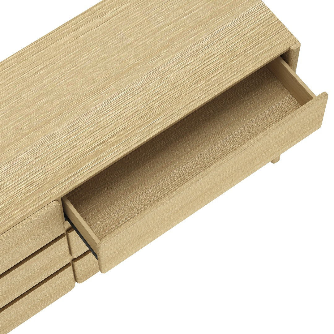 - Minimalist low-profile design with smooth, rounded drawer fronts for a soft modern aesthetic.