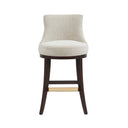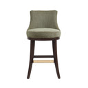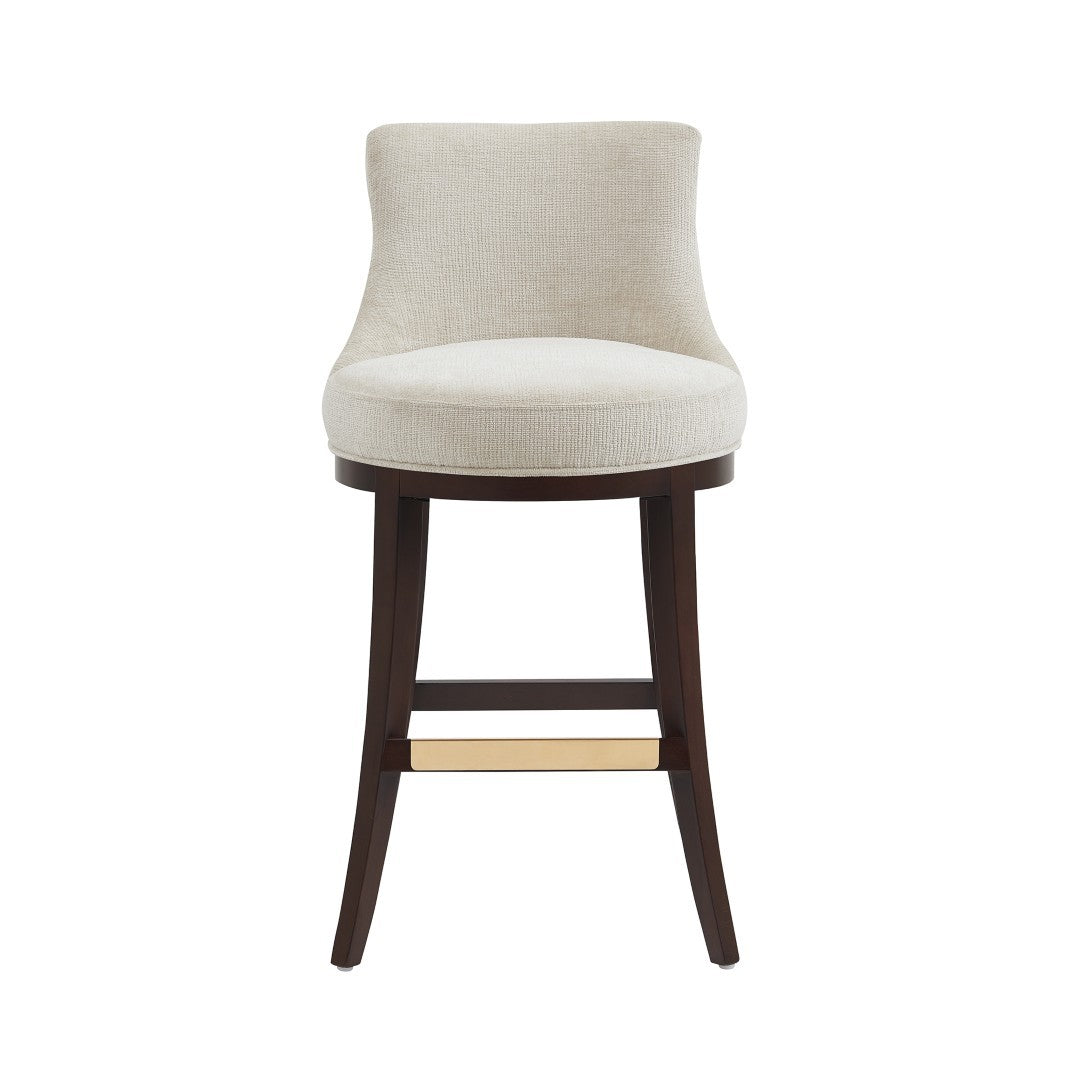 - ? Modern Barstool with Backrest Perfect for Bar and Kitchen Use. ? Barstool Dimensions Measure: 20.9 in. Length, 40.2 in. Height, 23 in. Depth. ? Upholstered in Luxurious Textured Chenille. ? Features a Gracefully Curved Backrest for Ergonomic Support and Visual Appeal. ? Solid Beech Wood Frame Stained in Dark Walnut. ? Includes Footrest with Gold Metal Plate for a Touch of Elegance with Comfort. ? Made to Last. Commercial Grade Product. ? Delivered to you Fully Assembled! No Assembly Required!