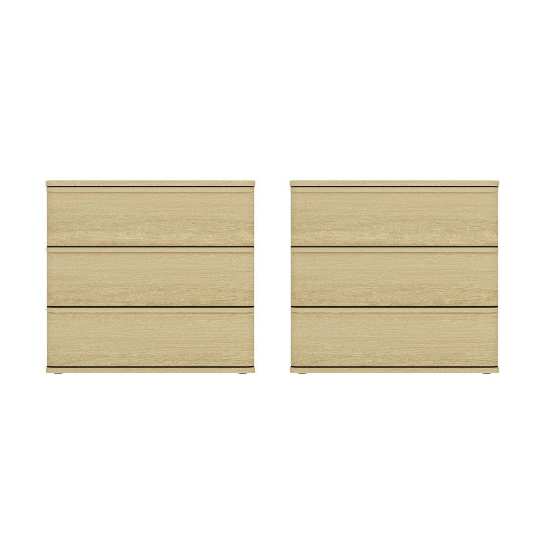 - ? Modern Nightstand for Bedroom and Living Room Use. Set of 2. ? Upon assembly, Nightstand Dimensions Measure: 26 in. Length, 24 in. Height, 20.9 in. Depth. ? Includes 3 Drawers with .75 Extension. ? Features Horizontal Wood Drawer Pulls ? Crafted with smooth, rounded corners and a minimalist silhouette for a modern yet classic appeal. ? Pedestal Base For Easy Cleaning and a Modern Touch. ? Perfect for Bedside Storage, Lamps or Display Items. ? Home Assembly Required. All Hardware Included
