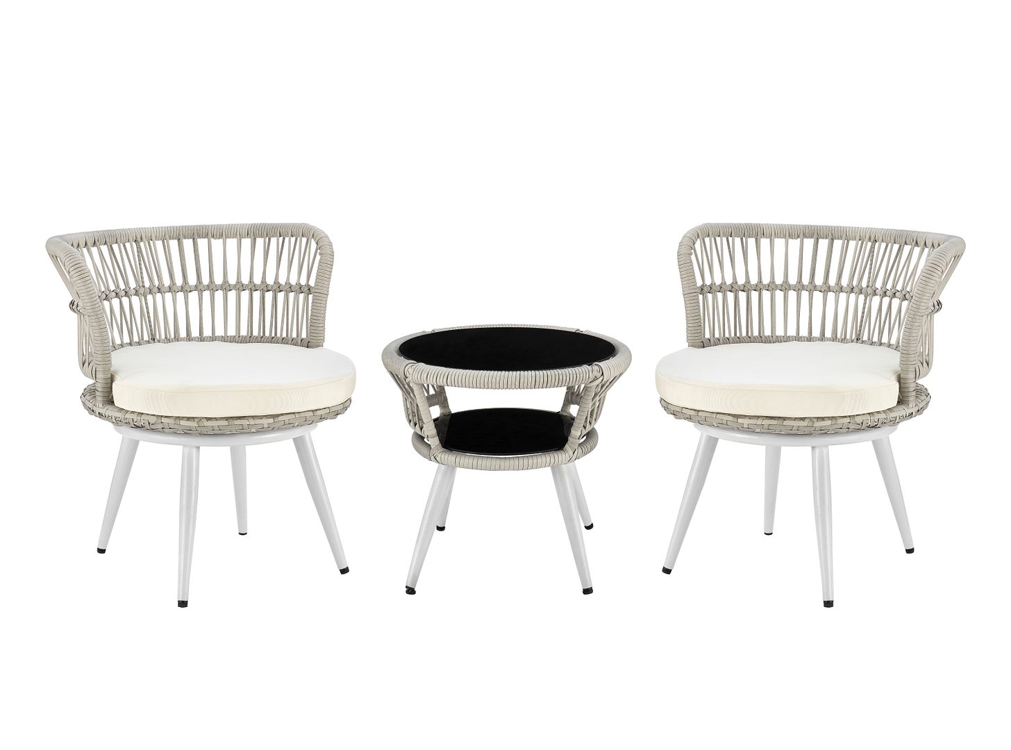 - Traditional 3-Piece Outdoor Patio Set with 2 Armchairs and 1 End Table.