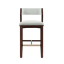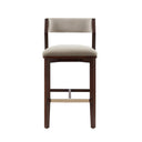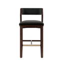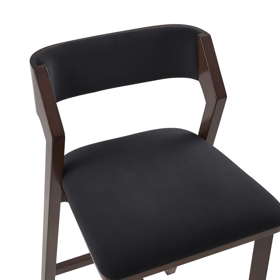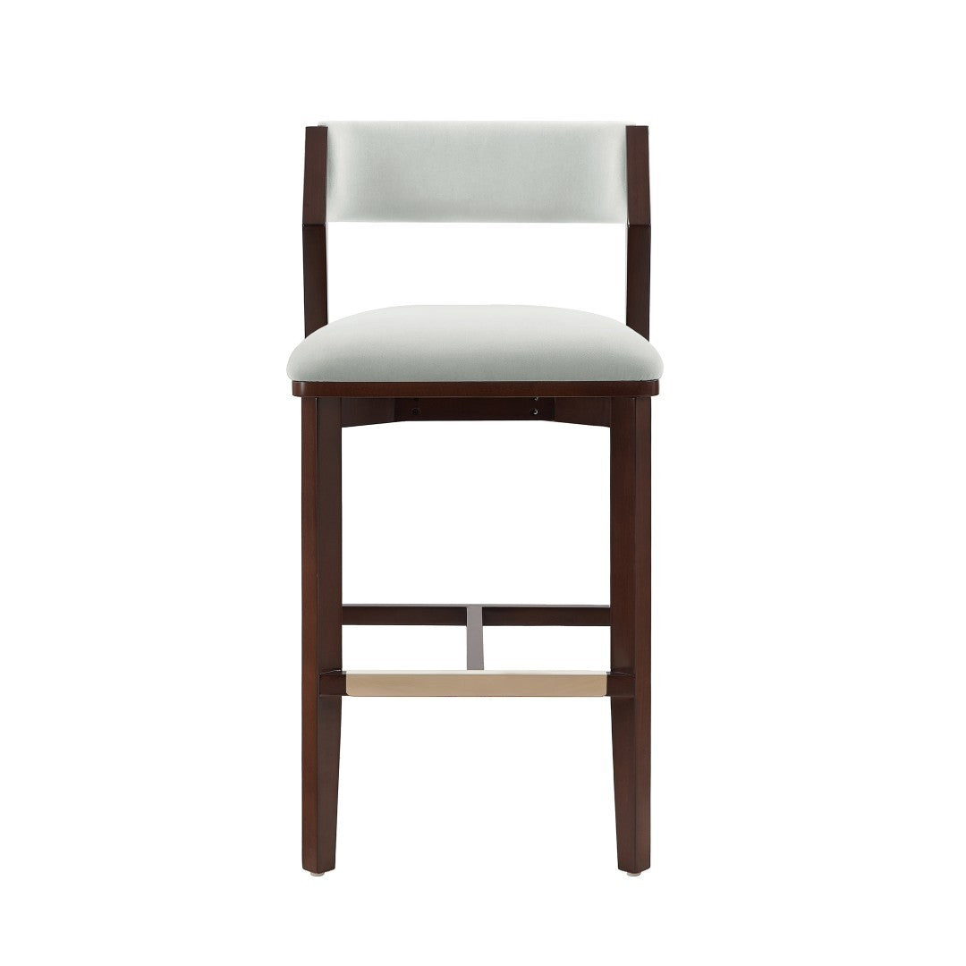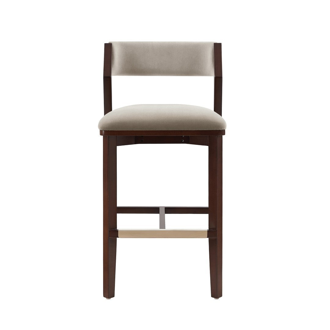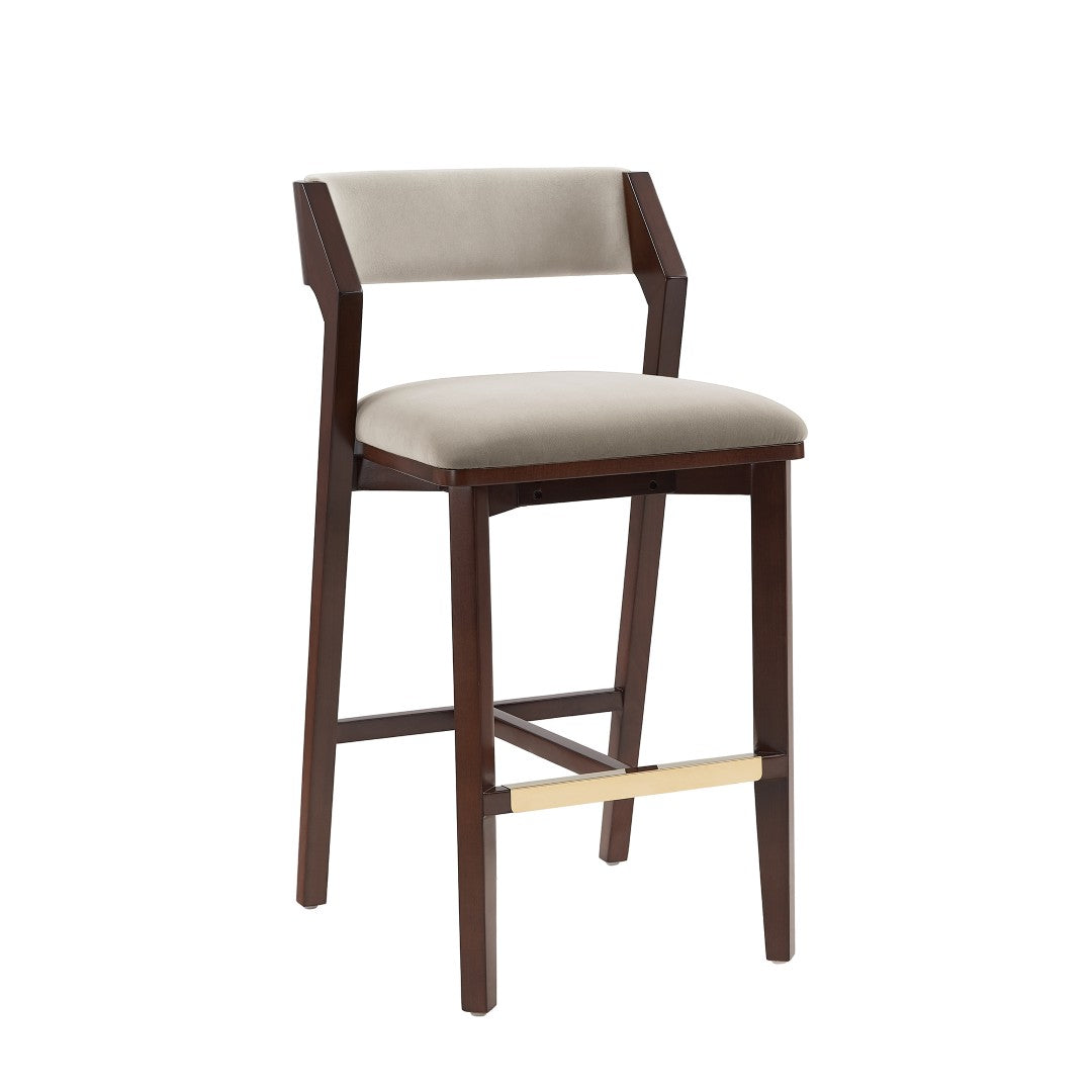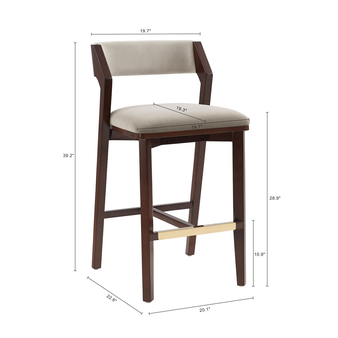 - ? Modern Barstool with Backrest Perfect for Bar and Kitchen Use. ? Barstool Dimensions Measure: 20.1 in. Length, 39.2 in. Height, 22.6 in. Depth. ? Upholstered in Luxurious Velvet with Foam Padding. ? Beech Wood Frame with Dark Walnut Wood Grain Finish. ? Includes Footrest with Gold Metal Plate for a Touch of Elegance with Comfort. ? Rounded Padded Backrest. Seat Height: 28.9". ? Made to Last. Commercial Grade Product. ? Delivered to you Fully Assembled! No Assembly Required!