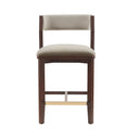 - ? Modern Counter Stool with Backrest Perfect for Counter and Kitchen Use. ? Counter Stool Dimensions Measure: 20.1 in. Length, 36.2 in. Height, 22.6 in. Depth. ? Upholstered in Luxurious Velvet with Foam Padding. ? Beech Wood Frame with Dark Walnut Wood Grain Finish. ? Includes Footrest with Gold Metal Plate for a Touch of Elegance with Comfort. ? Rounded Padded Backrest. Seat Height: 25.9". ? Made to Last. Commercial Grade Product. ? Delivered to you Fully Assembled! No Assembly Required!