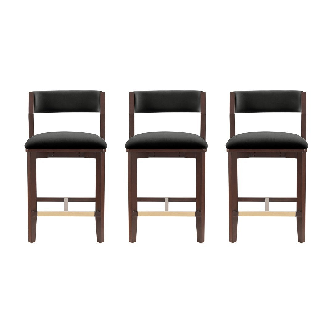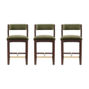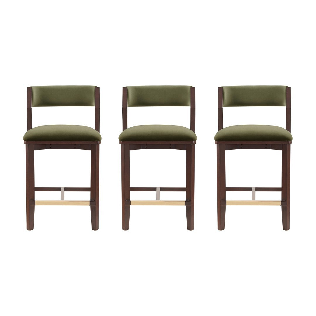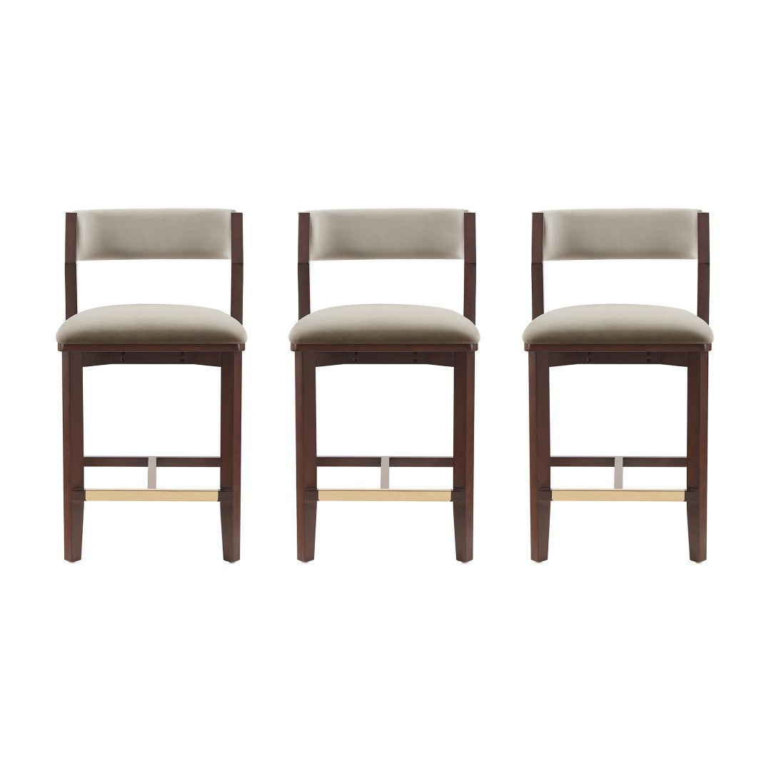 - ? Modern Counter Stool with Backrest Perfect for Counter and Kitchen Use. Set of 3. ? Counter Stool Dimensions Measure: 20.1 in. Length, 36.2 in. Height, 22.6 in. Depth. ? Upholstered in Luxurious Velvet with Foam Padding. ? Beech Wood Frame with Dark Walnut Wood Grain Finish. ? Includes Footrest with Gold Metal Plate for a Touch of Elegance with Comfort. ? Rounded Padded Backrest. Seat Height: 25.9". ? Made to Last. Commercial Grade Product. ? Delivered to you Fully Assembled! No Assembly Required!