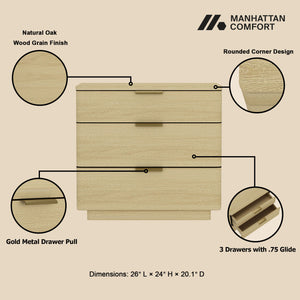 - Upon assembly, Nightstand Dimensions Measure: 26 in. Length, 24 in. Height, 20.1 in. Depth.
