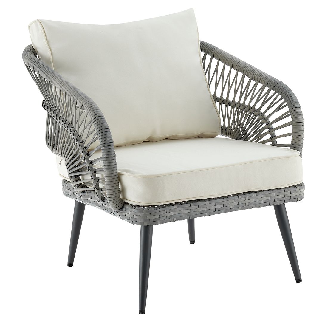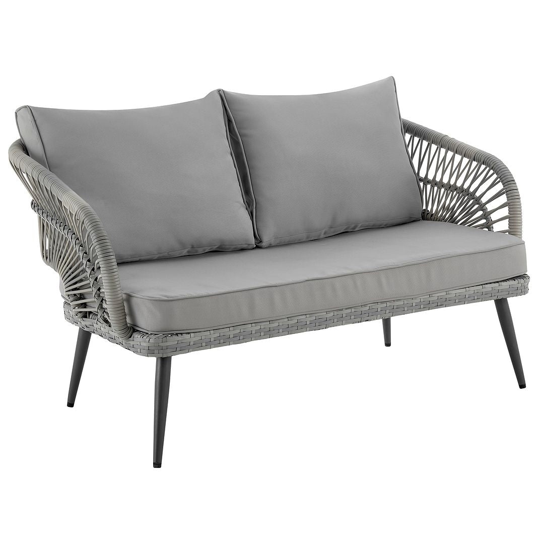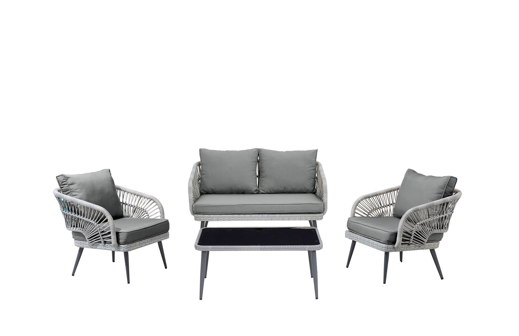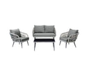 - Modern 4-Piece Outdoor Conversation Patio Set with 2 Armchairs, 1 Loveseat, and 1 Coffee Table.