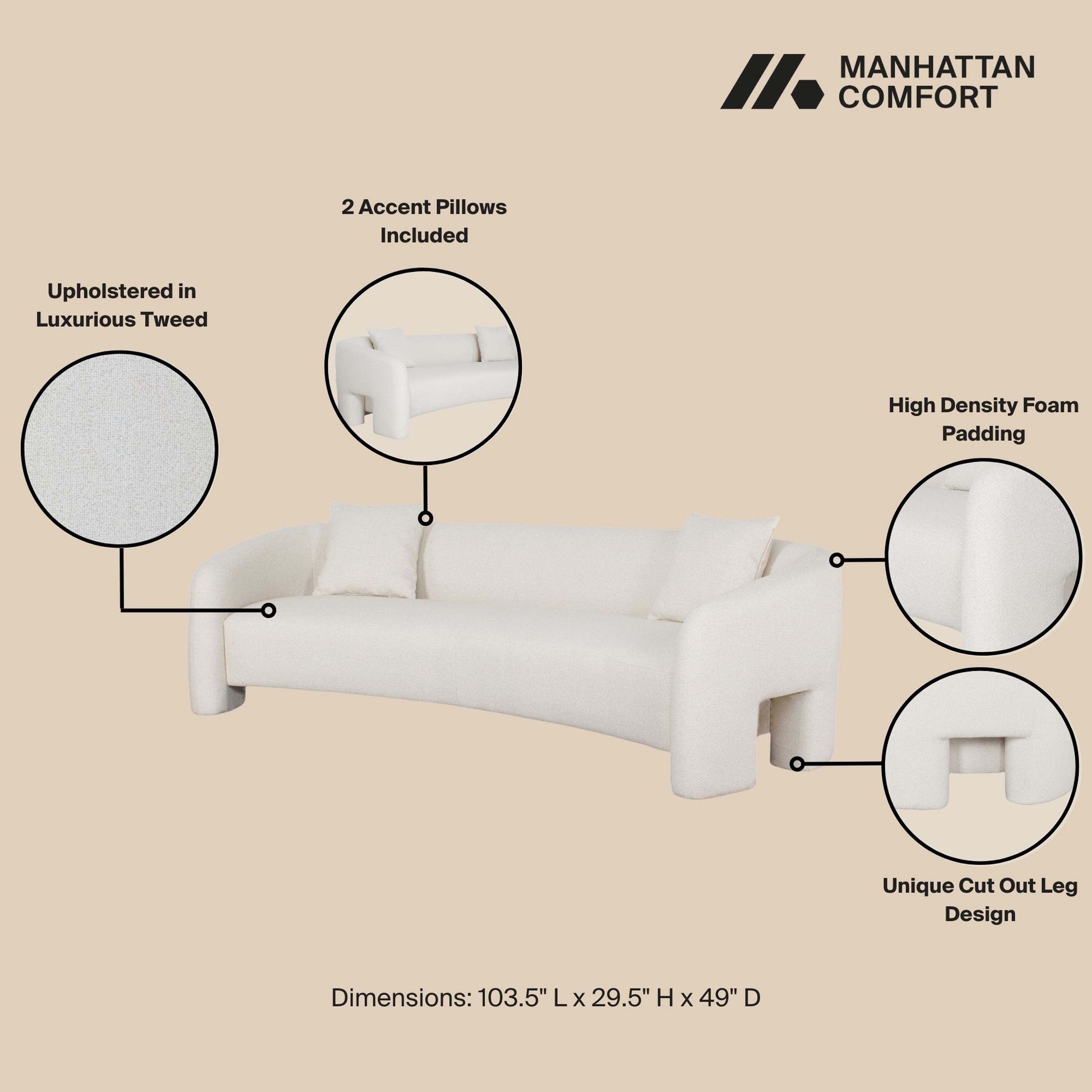 Description for SF017-GD Manhattan Comfort Modern Sylvia Tweed 103.5" Sofa with Accent Pillows in Gold Dust