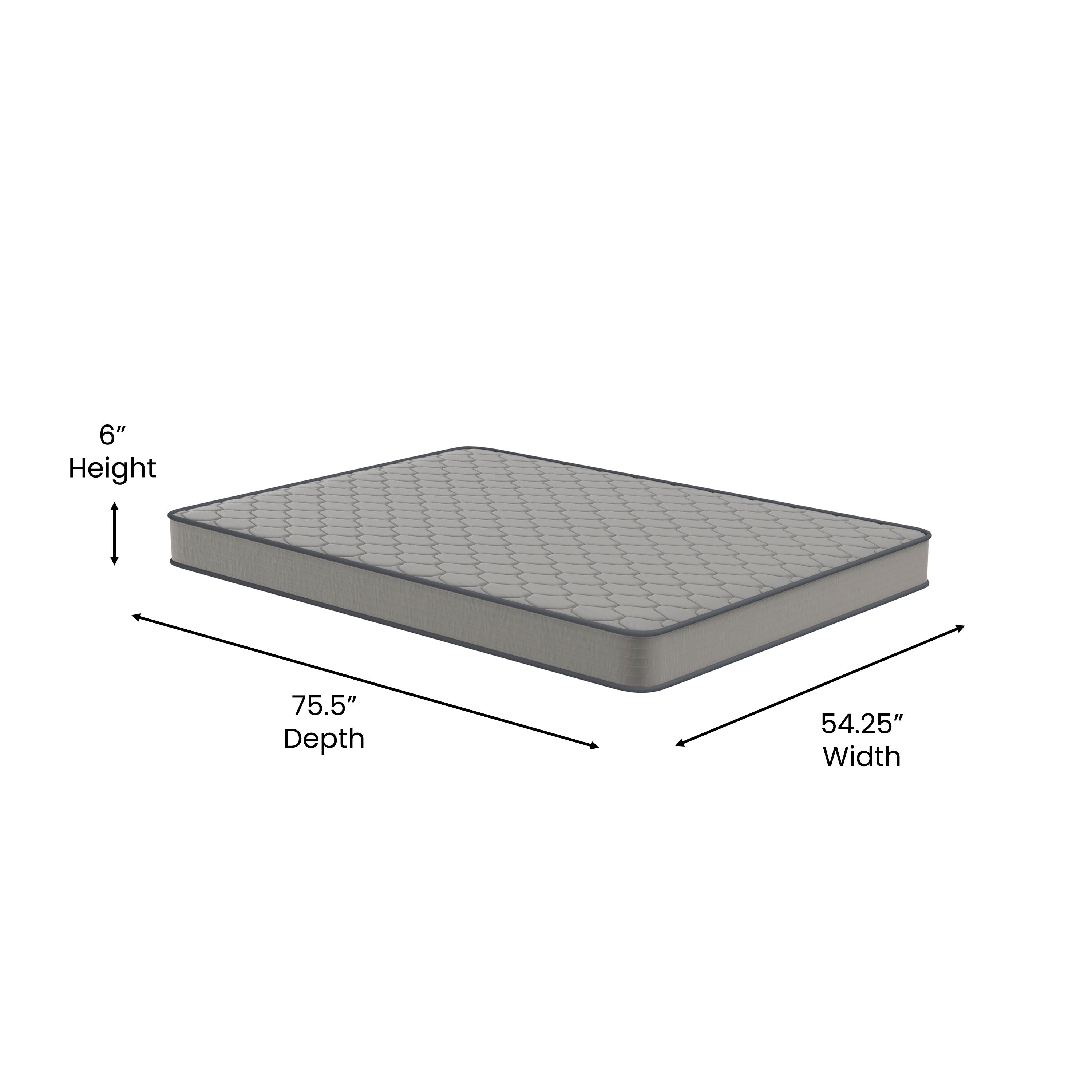 Experience comfort like never before with our 6 Inch CertiPUR-US Certified Spring Mattress in Full size. This hybrid foam and innerspring mattress in a box combines the best of both worlds to provide you with a restful night's sleep. The knitted breathable quilted fabric covering ensures a cozy feel, while the CertiPUR-US certified high-density foam and supportive heavy gauge tempered steel innerspring coils offer the perfect balance of comfort and support for all sleep positions. Whether you're looking to upgrade your bedroom, RV, trundle bed, bunk bed, day bed, or adjustable bed frame, this mattress fits most bed frames with a foundation or slatted supports. Expertly packed and conveniently delivered compressed and boxed for easy handling, this mattress requires no assembly.