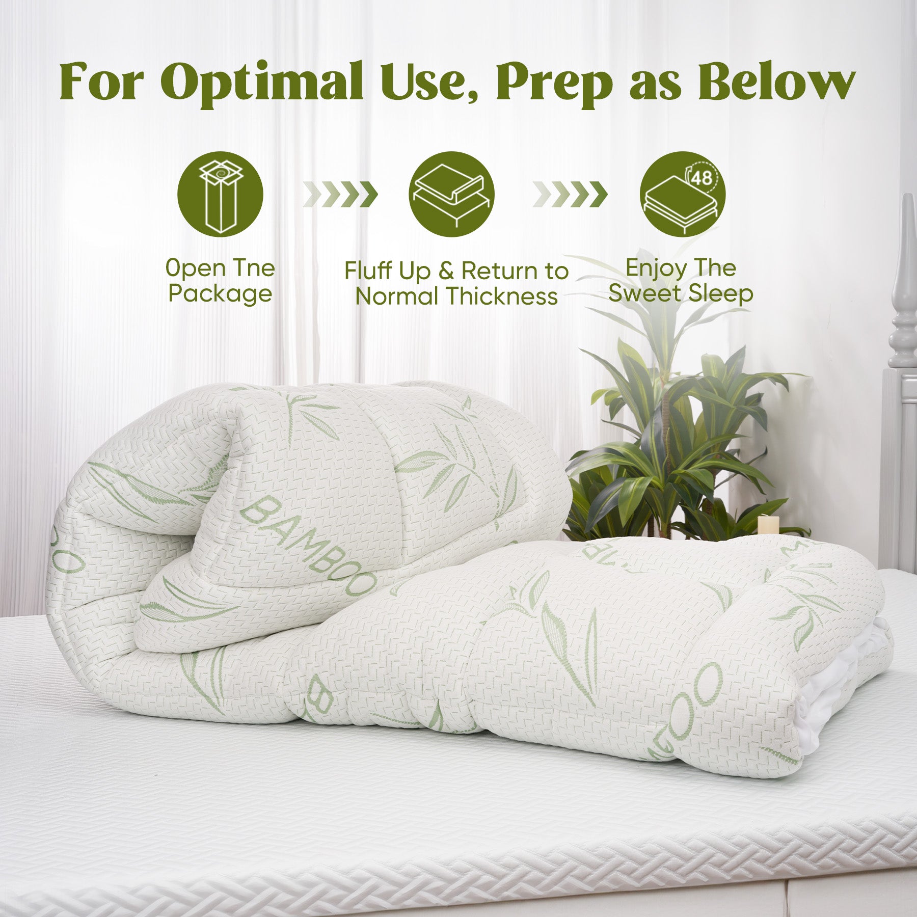 - Plush 1000g 3D+7D Fiber Fill for Cloud-Like Comfort:Generously filled with 1000g of premium 3D+7D polyester fiber for enhanced cushioning and mattress-like softness. Adds a subtle layer of comfort while protecting your mattress from wear, stains, and dust mites.