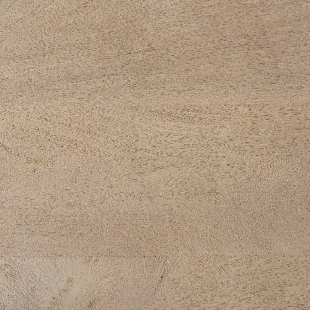 - Material: Solid Indian mango wood for durability and natural character; finished in a light gray tone to complement neutral or modern palettes.