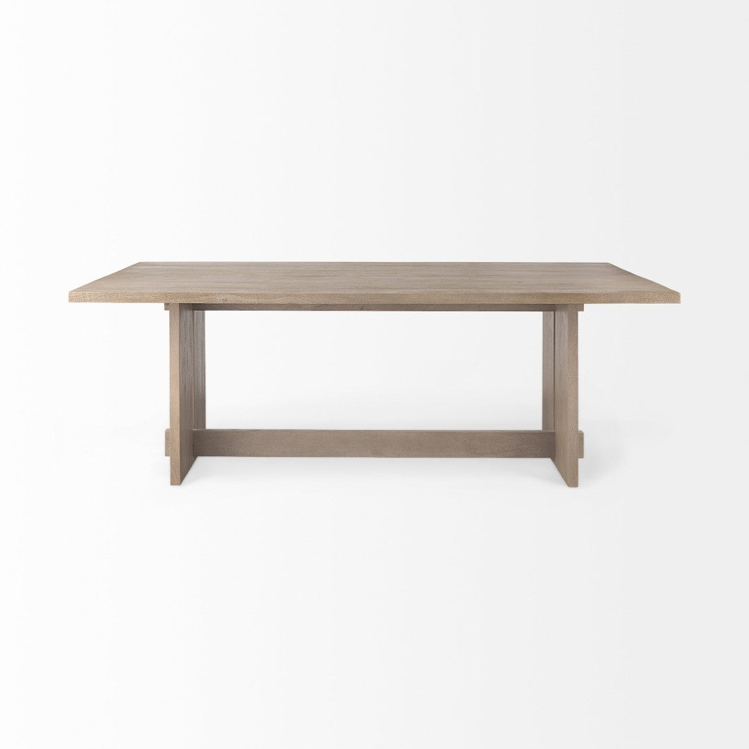 Aida brings understated Scandinavian-inspired elegance to your dining space with its clean lines, solid construction, and muted light-gray finish. Crafted from durable Indian mango wood with a fine sandblasted texture, this rectangular dining table pairs minimalist design with practical sturdiness—ideal for everyday meals, casual entertaining, and contemporary interiors seeking a relaxed, cohesive look.