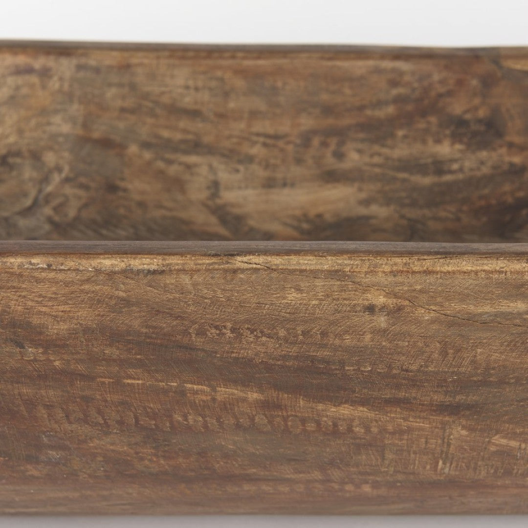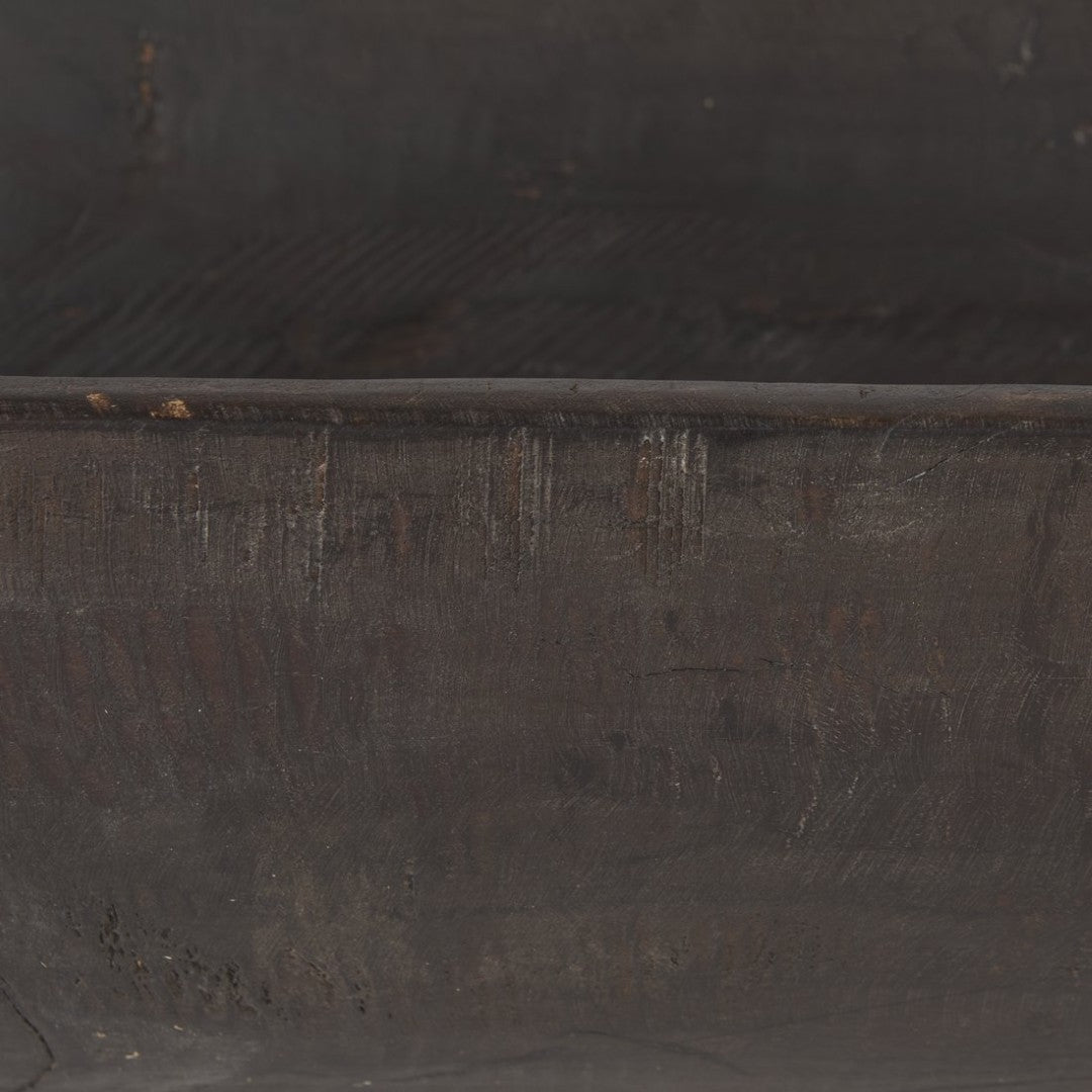 - The light brown stain of the reclaimed wood and fine sand-blasted finish adds amazing texture which allows this large oval bowl to complement a variety of design aesthetics.
