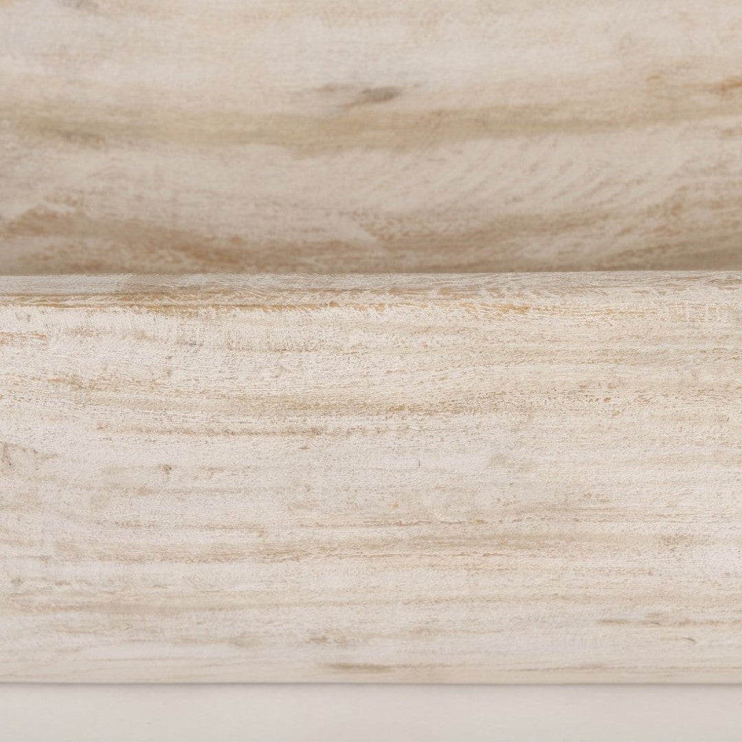 This extra-large reclaimed wood oblong bowl combines rustic charm with contemporary style—perfect as a centerpiece, decorative catchall, or serving prop. Hand-carved from reclaimed wood, it features a fine sand-blasted, white-wash finish that highlights pink undertones and natural grain for a textured, artisanal look.
