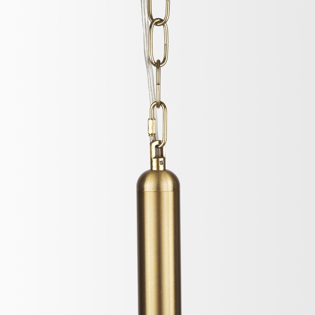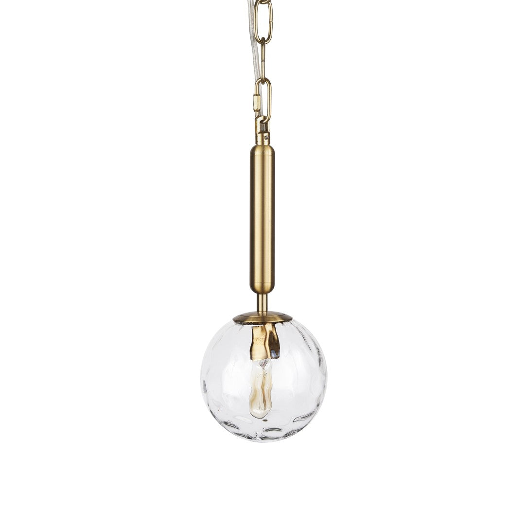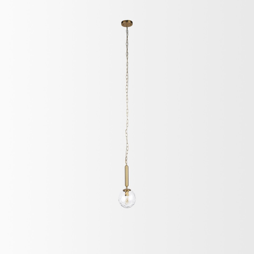 - Design: Electroplated gold-finish metal canopy and stem paired with a clear water-textured glass globe for subtle visual interest and light diffusion