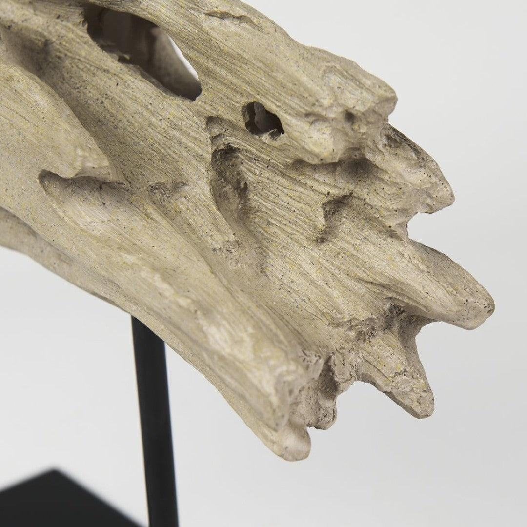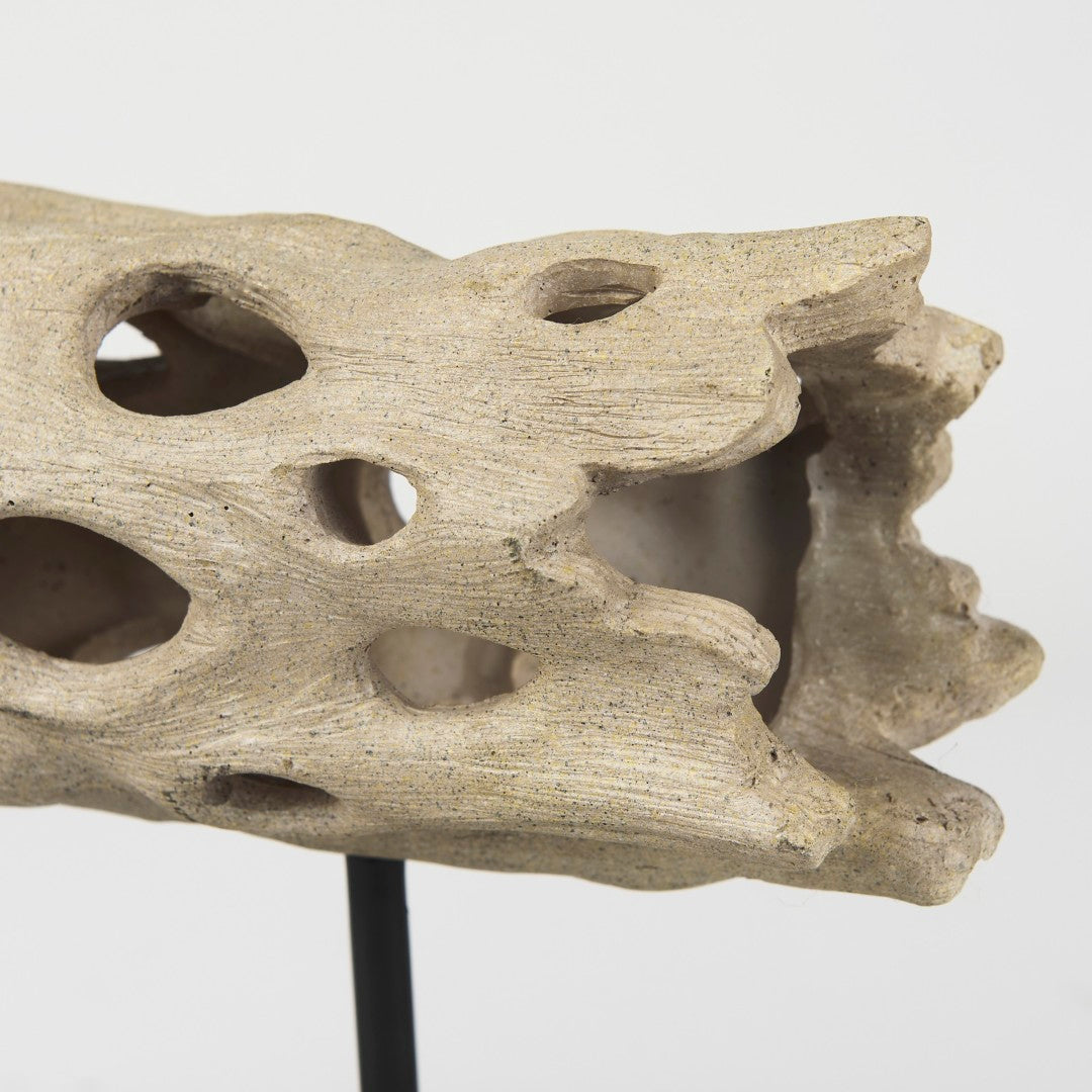 Bring organic texture and modern design to your space with this Cholla wood-inspired decorative object. Expertly cast in resin and mounted on a slim metal stand, it offers the natural silhouette of cholla cactus wood without the maintenance—perfect for tabletops, shelves, or mantel displays where you want a sculptural focal point.