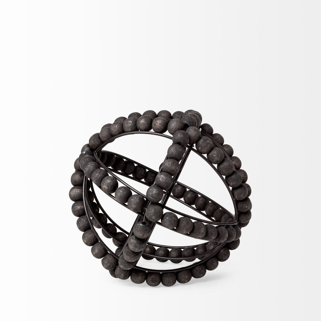 Elevate your decor with this sculptural black orb that blends industrial edge with handcrafted warmth. The Earnhardt I pairs a metal frame with wooden bead detailing for a versatile accent that complements modern, mid-century, boho, and urban loft interiors. Its compact footprint makes it ideal for tabletops, shelves, mantels, or grouped with other decorative objects to create a curated vignette.