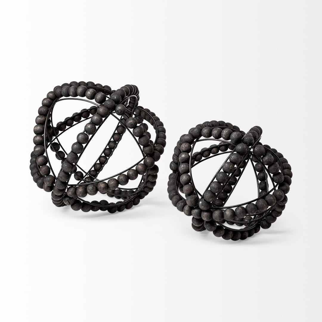 Bring texture and sculptural interest to your decor with the Earnhardt II — a larger statement orb from the Earnhardt series that blends metal structure with handcrafted wooden bead detailing. Finished in a deep black tone, this piece complements industrial, modern, and eclectic interiors while serving as a striking focal point on shelves, consoles, or coffee tables. Delivered fully assembled for immediate display.