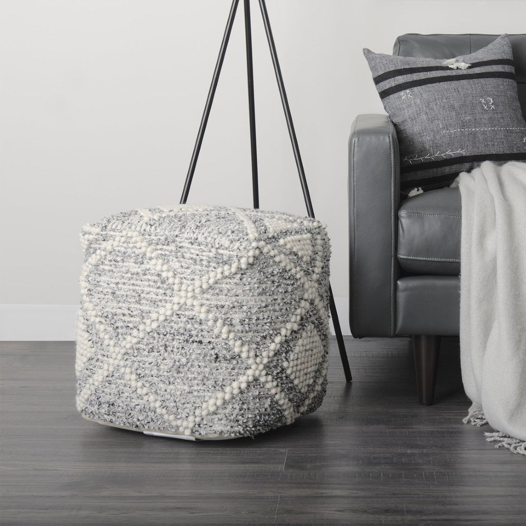 Add textured comfort and casual style to your living space with this hand-finished pouf. Woven from a durable blend of yarn, wool, and cotton, it brings a soft, tactile element and subtle patterning that complements coastal, boho, farmhouse, and eclectic interiors. Use it as extra seating, a footrest, or a low side surface to introduce layered texture and relaxed charm.