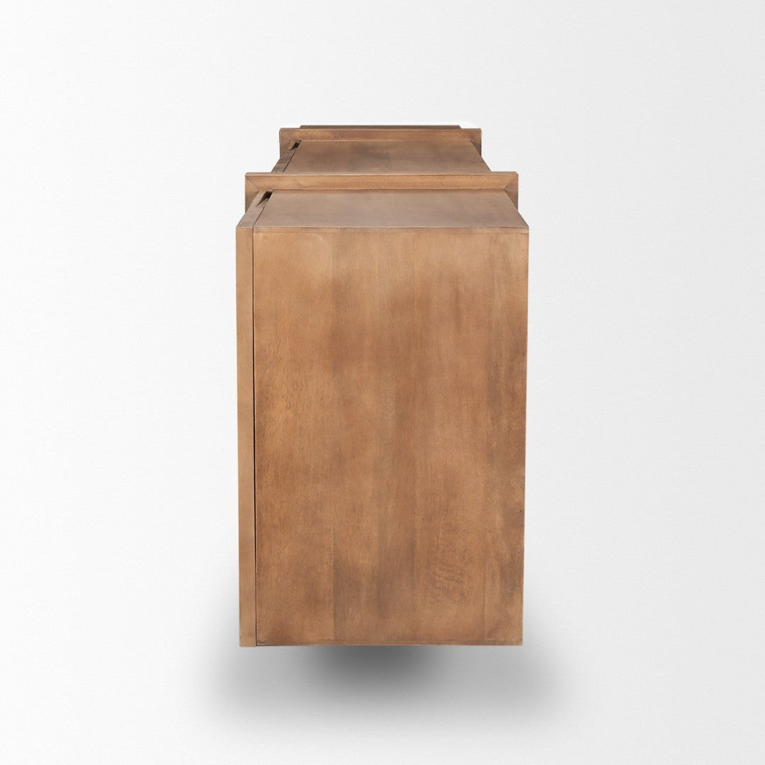 Elevate your living or dining space with the Eula sideboard — a refined blend of solid wood craftsmanship and contemporary geometric design. Its smooth medium-brown finish and angular support legs create a striking silhouette that complements modern and transitional interiors while providing generous concealed storage for tableware, linens, or media essentials.