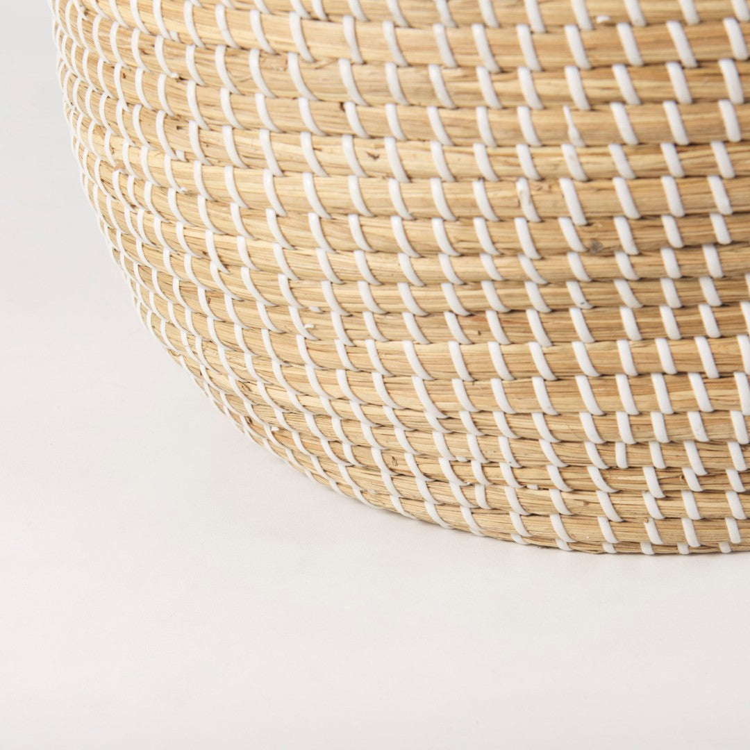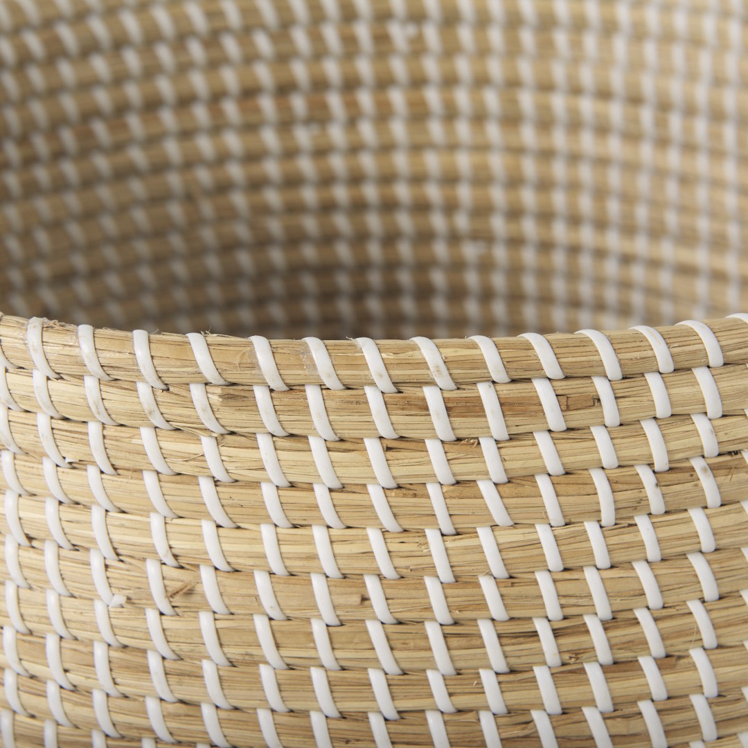 - Material: Woven seagrass over a fabric core for lightweight durability