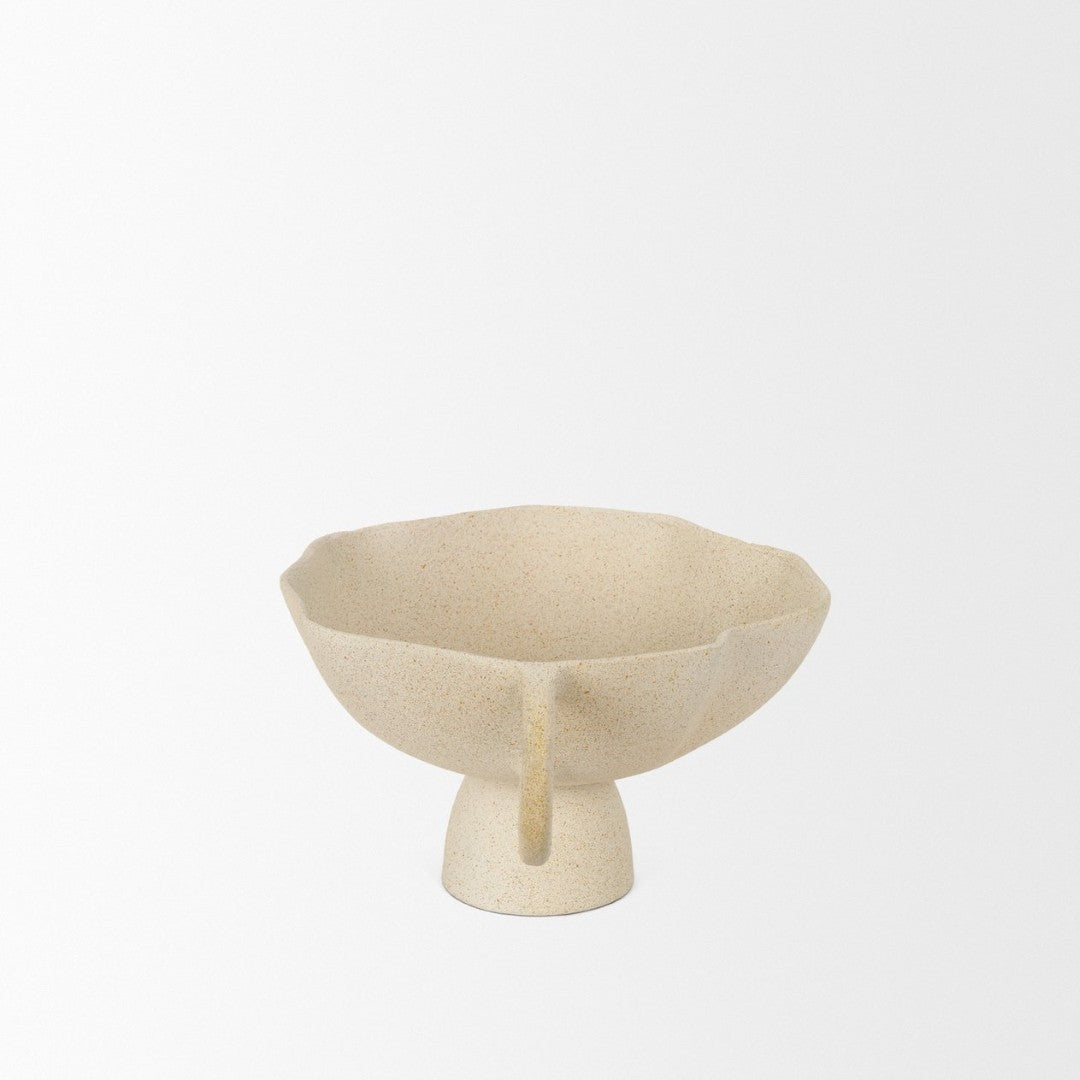 Elevate your tabletop or shelf with this artfully crafted decorative bowl that blends organic form with tactile, sandy texture. Its understated beige finish and dual handles create a sculptural accent piece that works beautifully as a standalone display or a vessel for dried botanicals, decorative orbs, or seasonal decor.