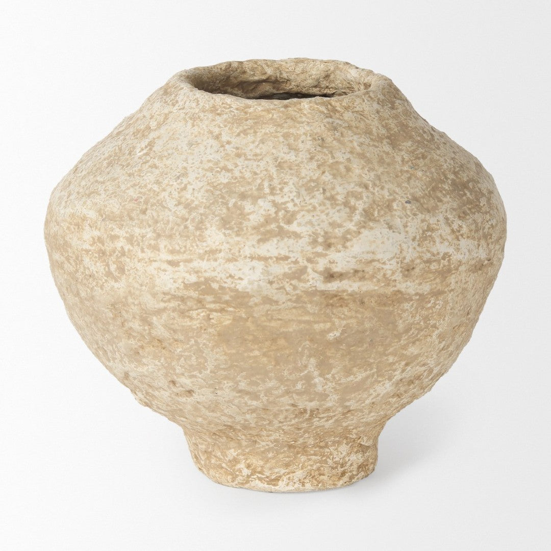 Handcrafted from upcycled materials by skilled artisans, this petite Ritu paper mache pot brings warm, natural texture to any indoor space. Its soft beige finish and unique handcrafted variations make each piece a distinct decorative accent—ideal for displaying dried flowers, artificial botanicals, or standing alone as a sculptural object. Lightweight and sustainable, it adds artisan charm to living rooms, bedrooms, entryways, or office shelves.