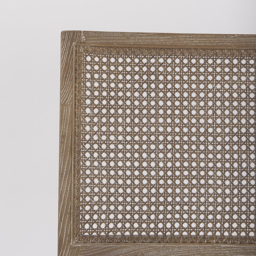 - Care: Spot clean fabric as needed; wipe wood and cane with a dry or slightly damp cloth