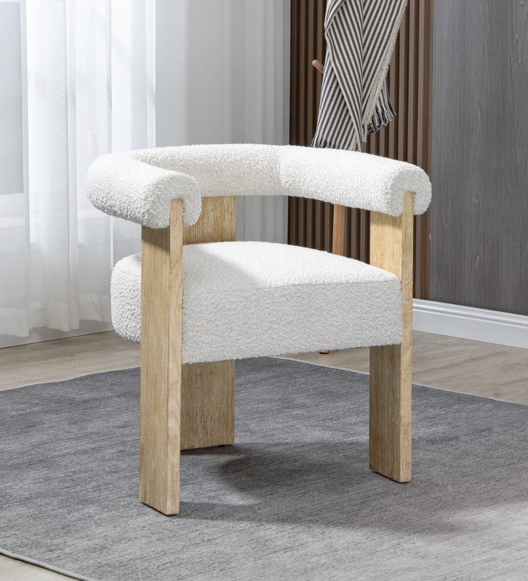- Material: Boucle Fabric / Rubberwood / Foam