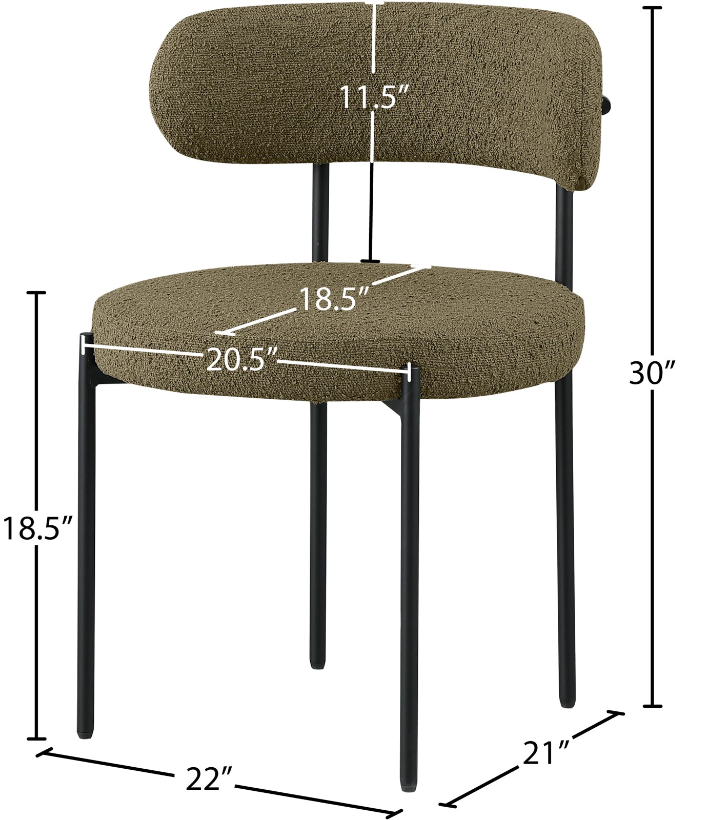 - Dimensions: 880Olive-C Beacon Olive Green Boucle Fabric Dining Chair - 22" W x 21" D x 30" H
