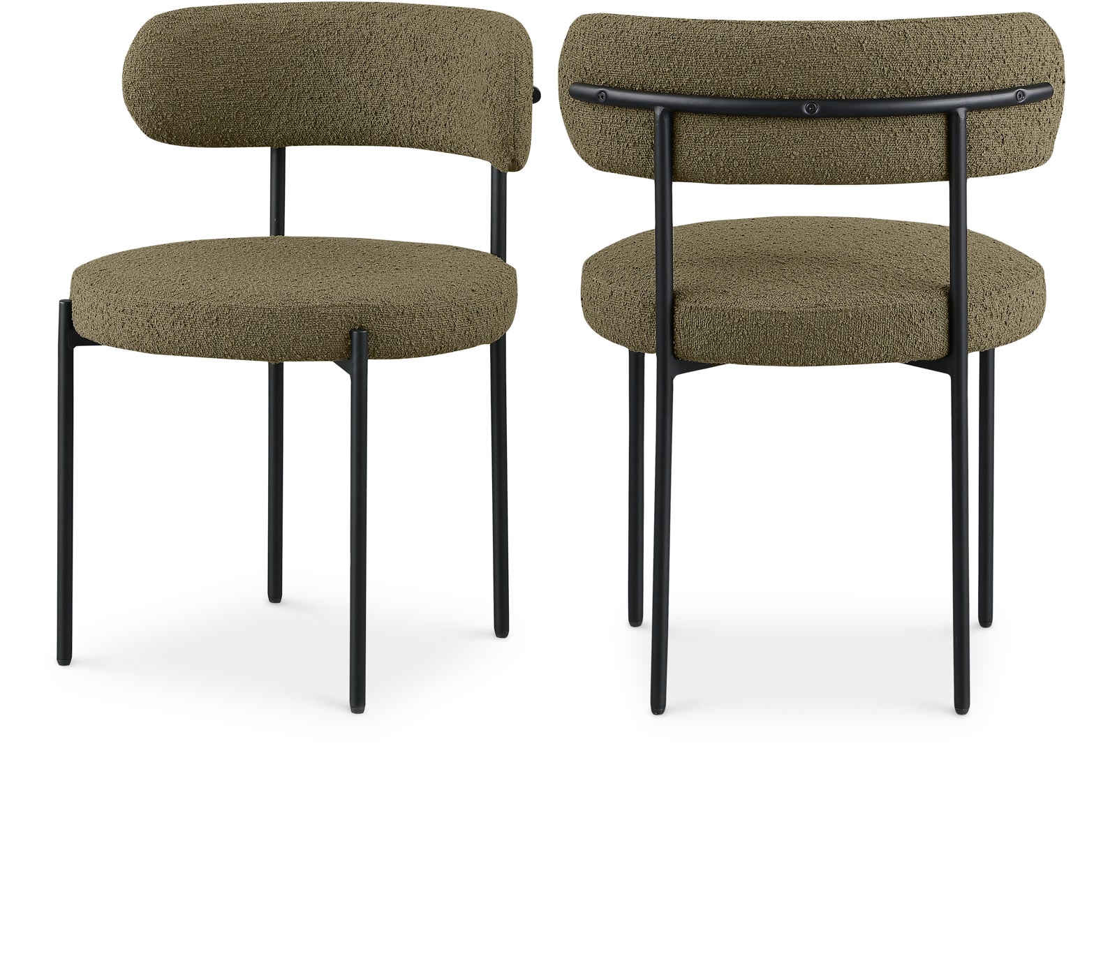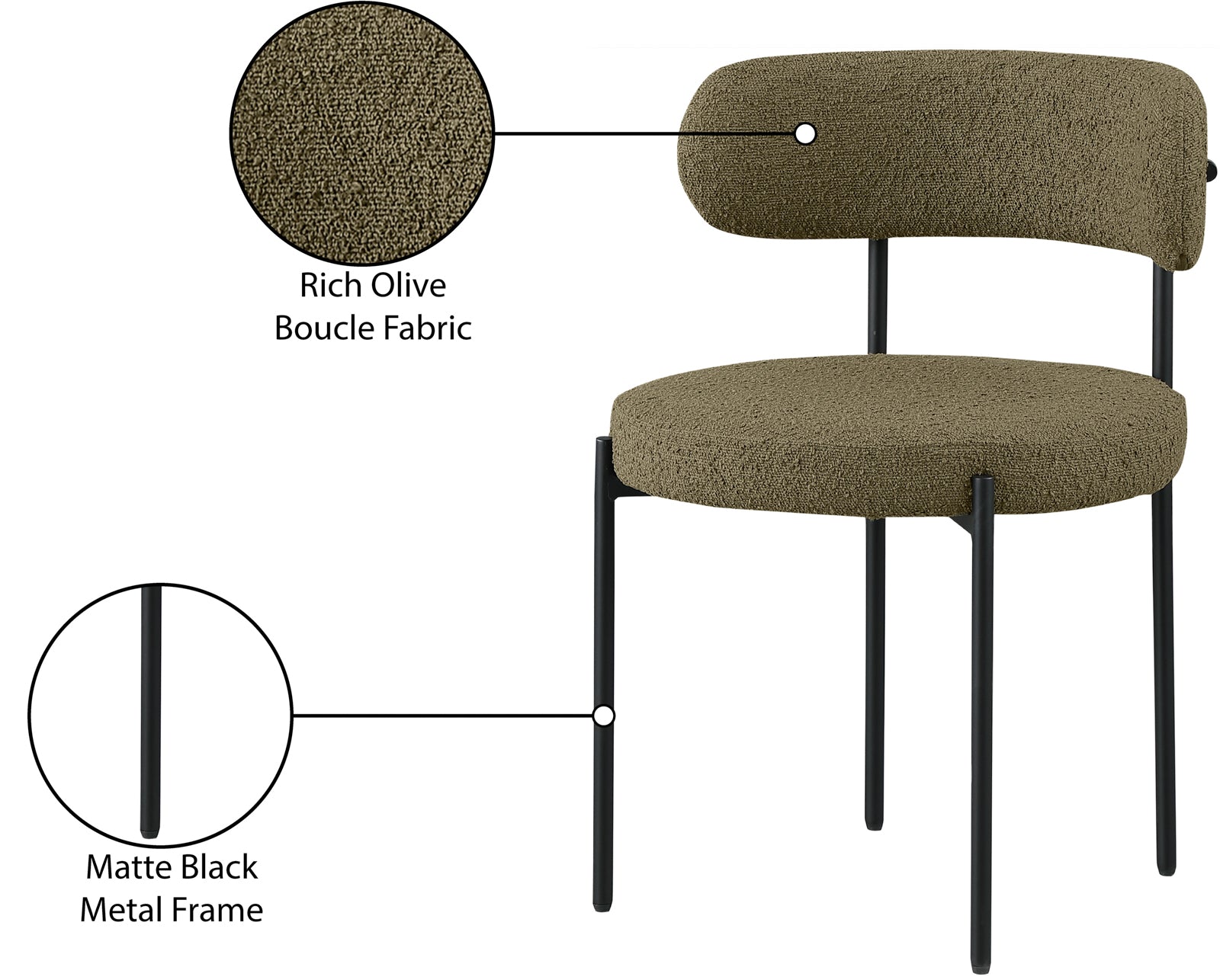 - Material: 880Olive-C Beacon Olive Green Boucle Fabric Dining Chair - Boucle Fabric / Iron / Foam with Matte Black