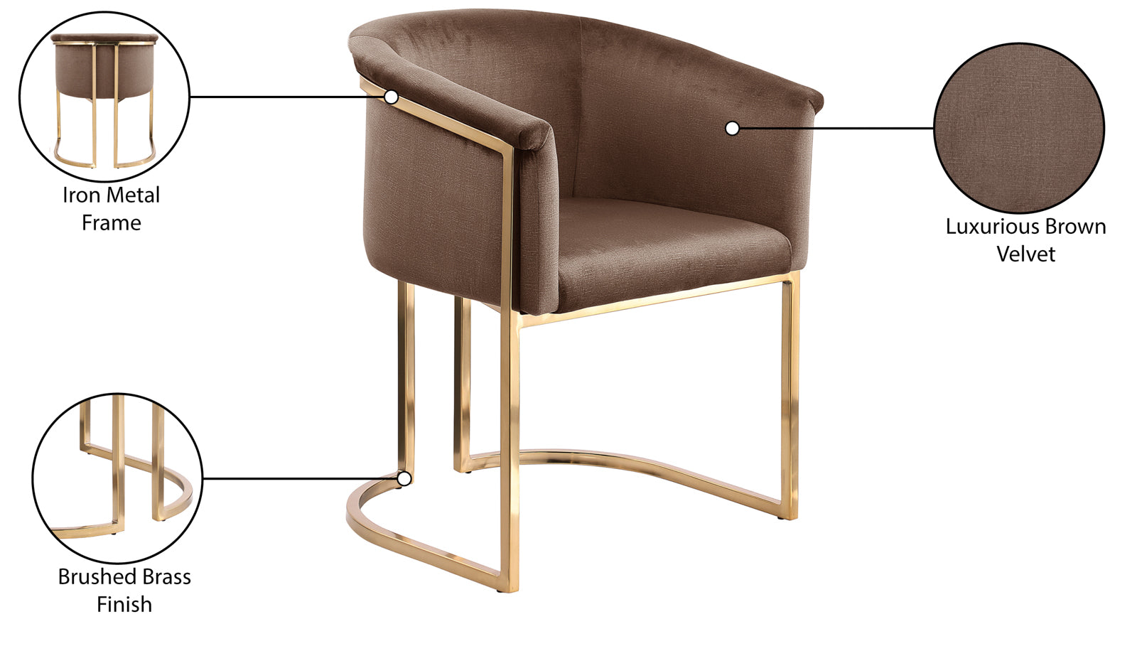 - Material: 758Brown-C Tierra Brown Velvet Dining Chair - Velvet / Engineered Wood / Iron / Foam with Brushed Brass