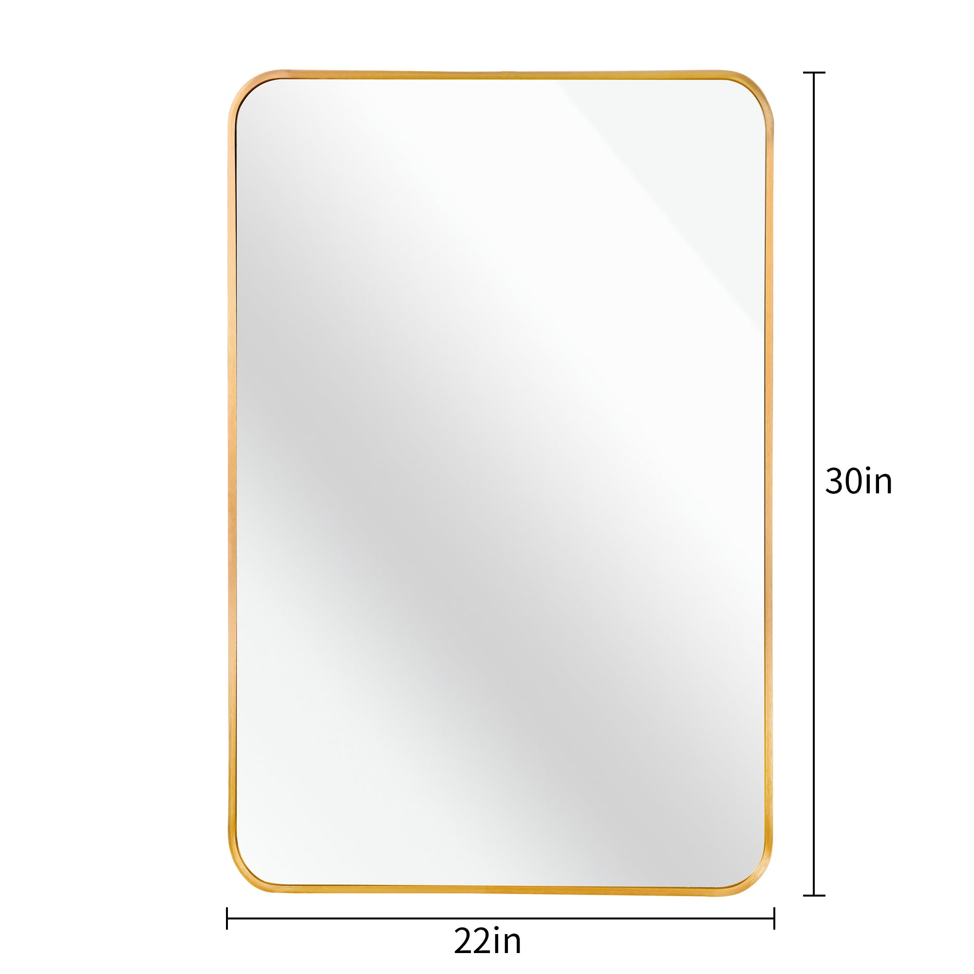 Add a touch of modern elegance to your bathroom with this gold-framed rectangular wall mirror. Its slim, brushed metal frame and high-definition glass deliver a clear, undistorted reflection, while thoughtful safety and mounting features make it a practical choice for everyday use.