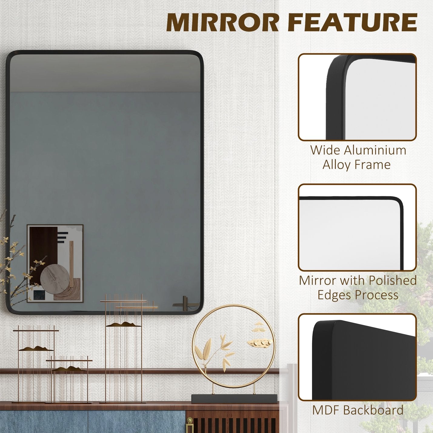 Bring modern elegance and practical durability to any room with this sleek rectangular wall mirror. Its slim aluminum frame and high-definition 5-layer float glass deliver a crisp, true-to-life reflection while the versatile hanging options and safety features make it a reliable focal point for bathrooms, bedrooms, living rooms, or hallways.